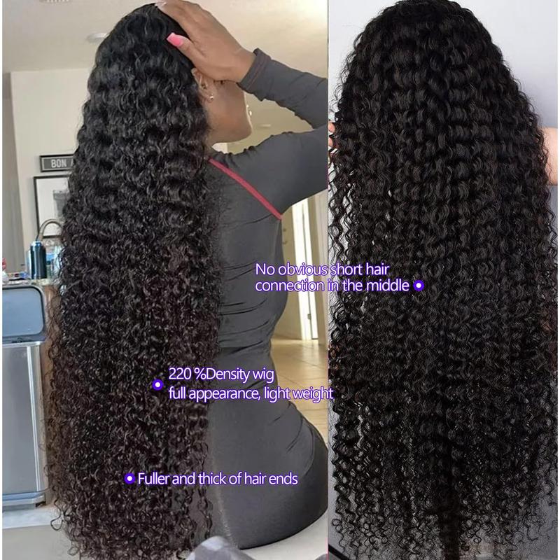 Ā·220% density Curly Frontal Wig Features - full and thick, shiny and silky, 220 density can simulate a more natural appearance than 180 density, creating more styles. The 220 density deep wave wig increases hair volume, but it is light weight, comfortable to wear, the end of the wig is fuller, with no obvious layering in the middleI,fmore durable,you want to get a high-quality thick wig, Lemoda 220 density curly human hair wig is a good choice