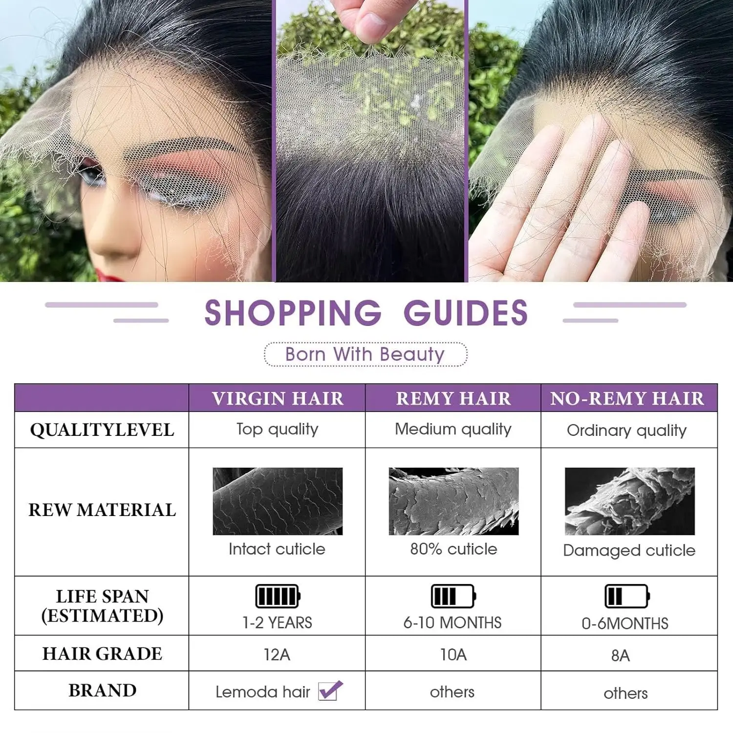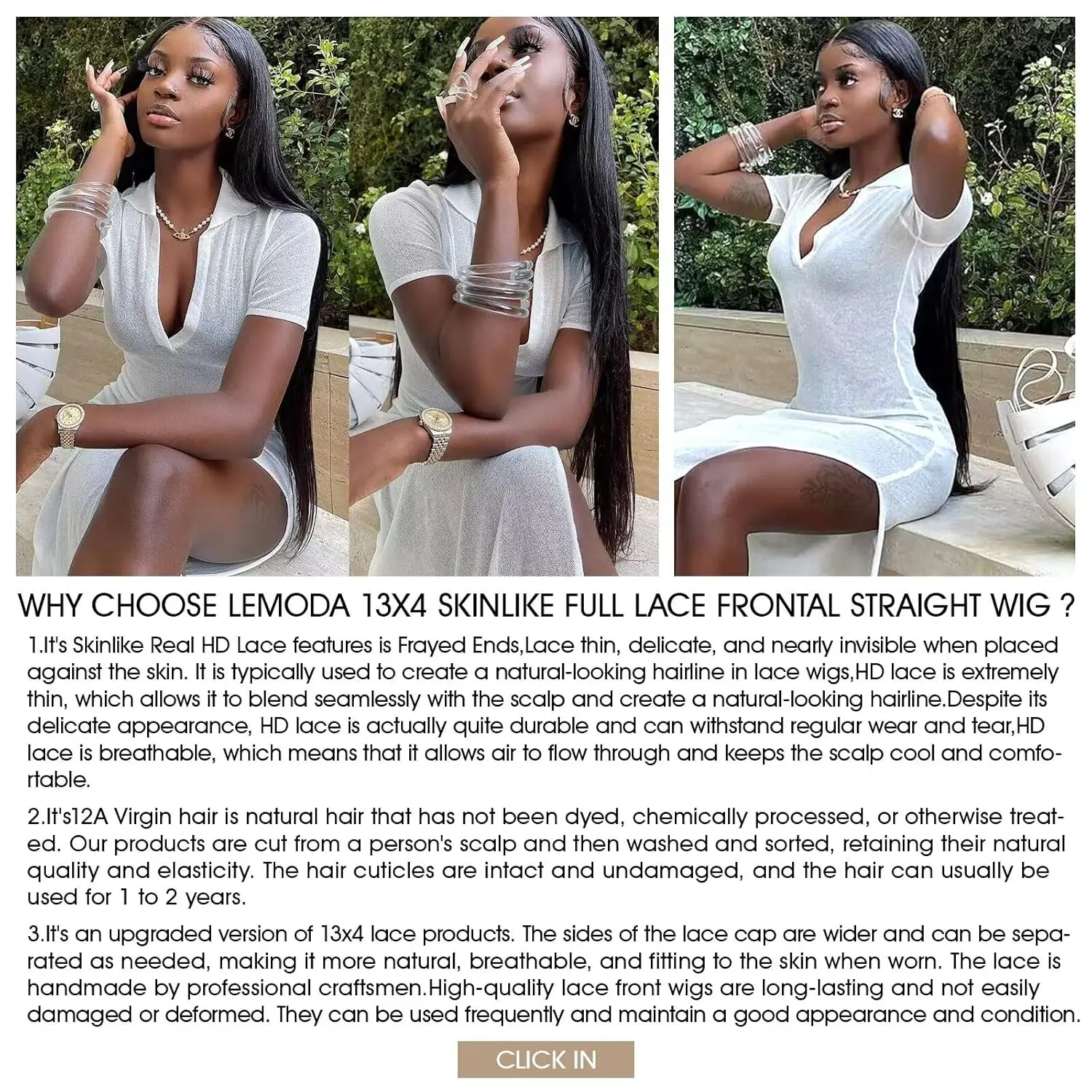 Lmoeda Full 13x4 Skinlike Real HD Lace Frontal Wigs 210% Density 12A Brazilian Straight Virgin Human Hair Lace Frontal Wigs Ultra-thin Frayed Ends