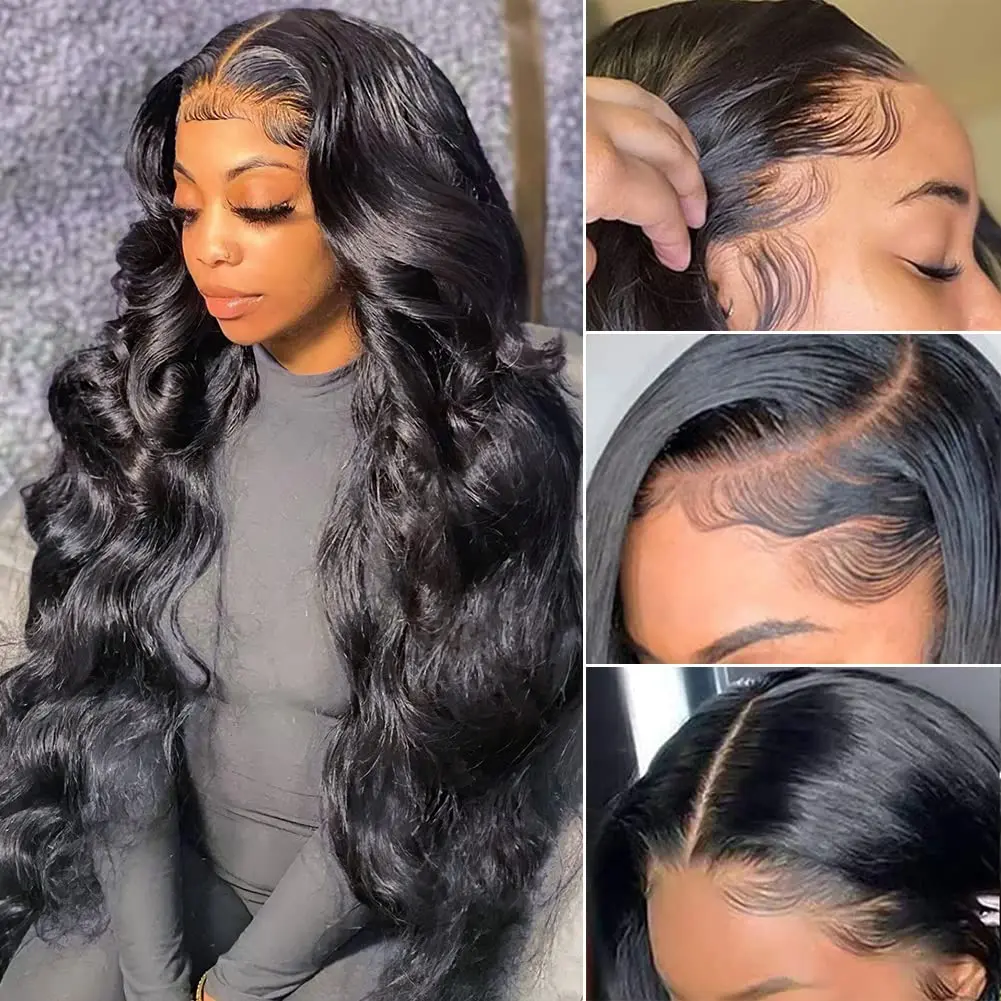 ·【Brazilian Straight Lace Front Wig】13X4 Lace Front Wigs Human Hair Pre Plucked 180 Density Body HD Frontal Wig with Baby Hair Natural Black Color