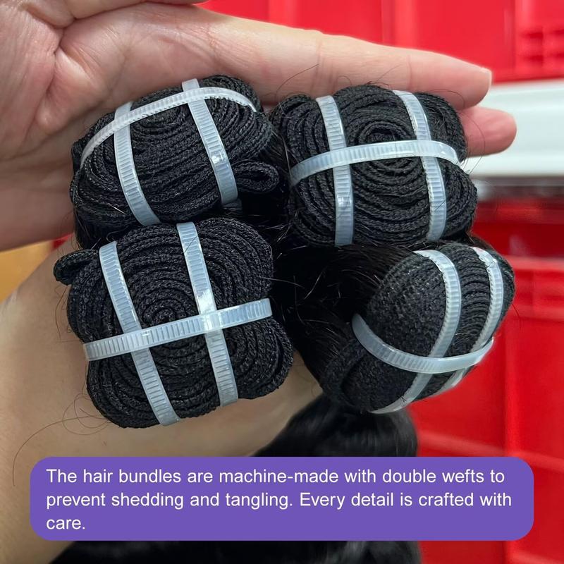 ·Lemoda Vingin Hair bundles-The bundles has been upgraded with every detail optimized.The double weft sewing technique firmly secures the hair, reducing shedding during wear and styling, and ensuring long-lasting durability.A stronger construction allows the hair to withstand multiple installs and styling sessions.The bundles are also full to the ends, with no thick-top and thin-end issues.