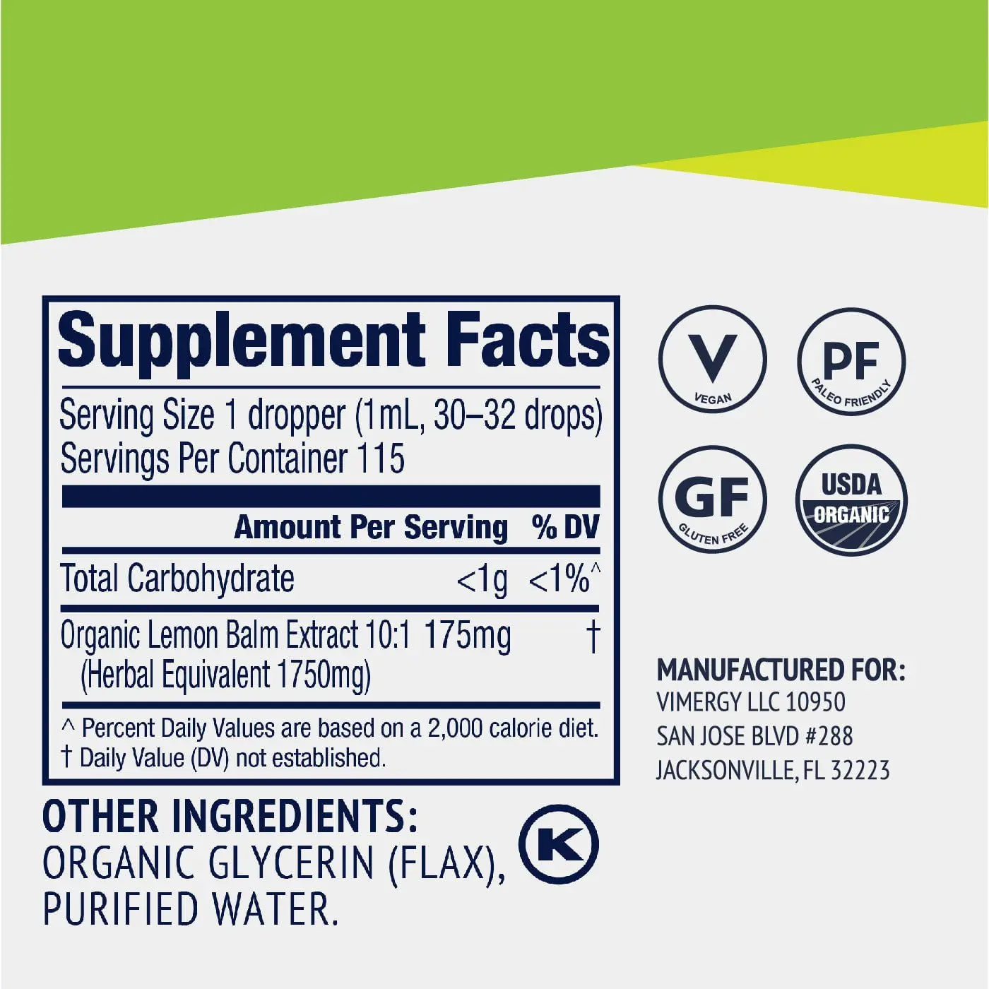 Health meets happy with Vimergy Lemon Balm! Lemon Balm is often called the "happy herb" for its ability to help uplift spirits and promote a calm, relaxed sense of wellbeing.