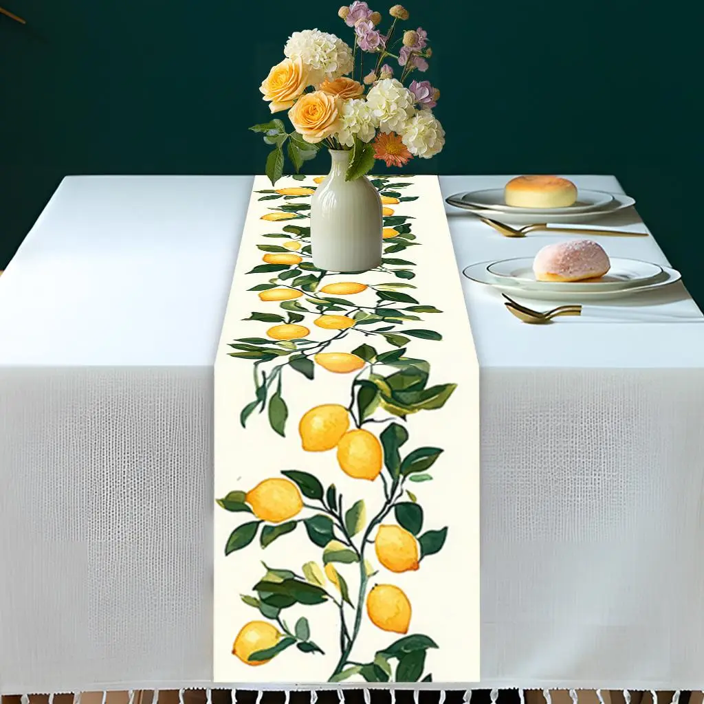 Lemon Tree Pattern Table Runner, Rectangular Tablecloth, Table Decoration Supplies for Home Kitchen Dining Room Party