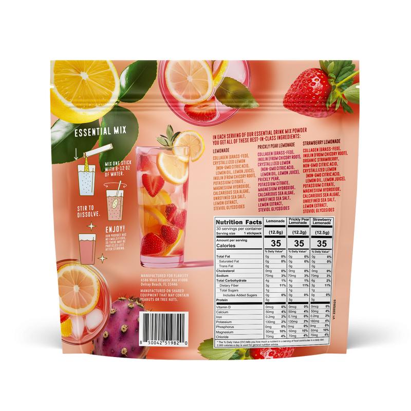This trio of tangy-sweet favorites includes classic Lemonade, juicy Strawberry Lemonade, and a bold Prickly Pear Lemonade. Flavored with actual fruit, each sip tastes like summer—and helps support gut health, glowing skin, and daily hydration.
