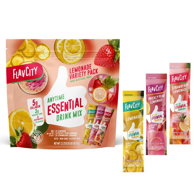 Turn your water into liquid sunshine. The Anytime Essentials Lemonade suite delivers a refreshing burst of flavor and lots of function, perfect for any moment of your day. With 5g of grass-fed collagen, 3g of fiber, and essential electrolytes in every stick, it’s hydration that goes the extra mile—without any added sugar or “natural” flavors.