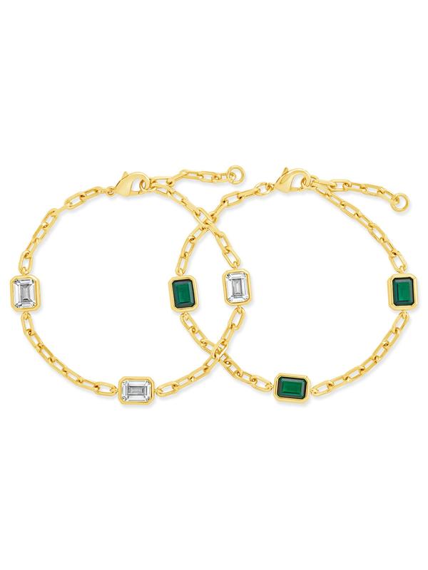 Elevate your style with the Lennox Station CZ Chain Bracelet Set. Crafted with delicate chain links and adorned with stunning green cubic zirconia (CZ), this set exudes sophistication and exclusivity. Indulge in luxury and make a statement with this elegant accessory.