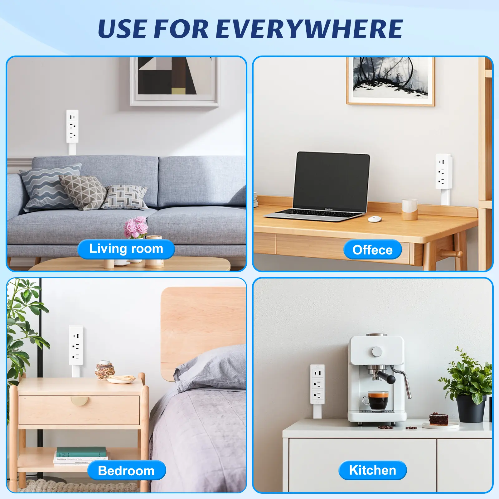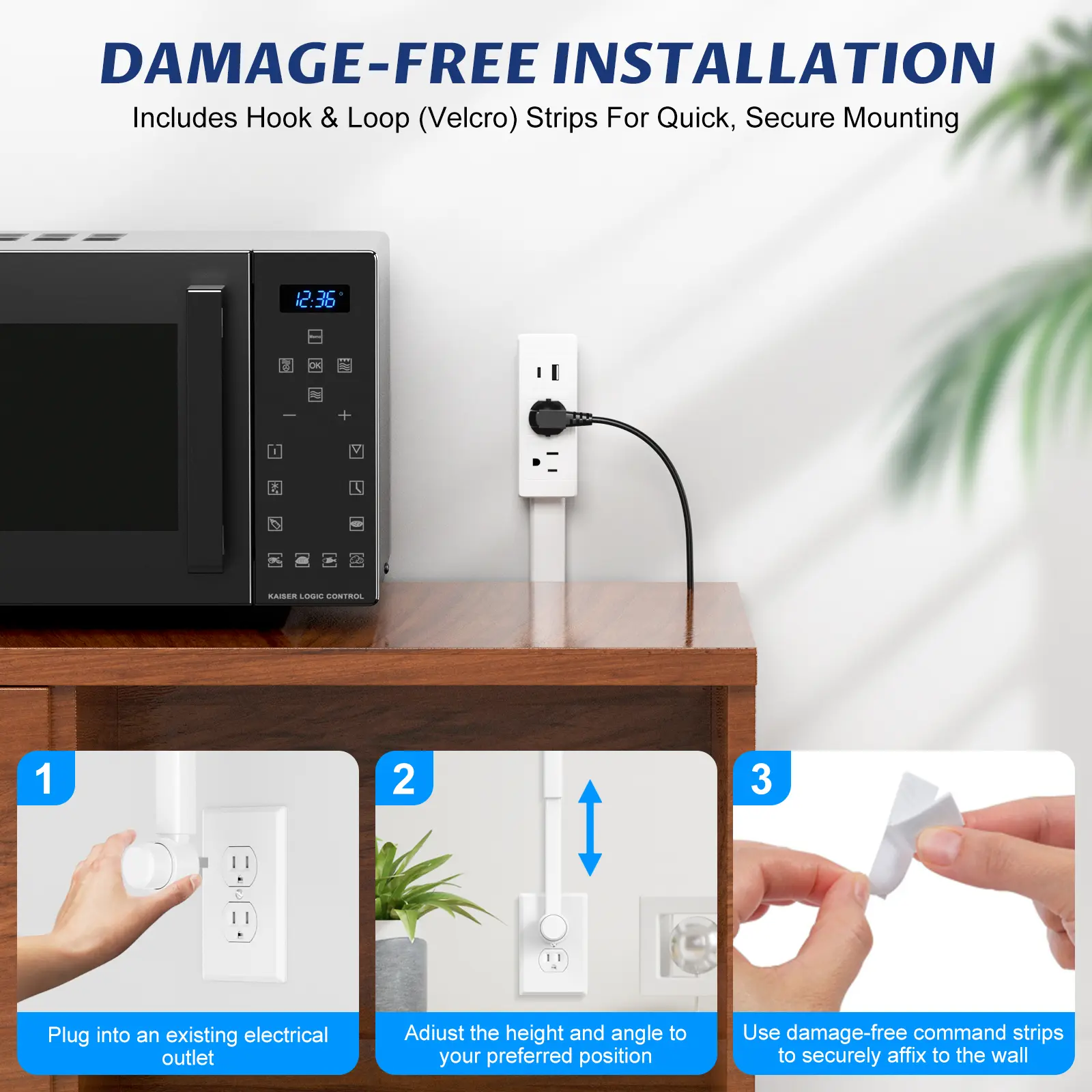 【Tool-Free Installation】Simply plug the wall outlet extender into any standard socket—no tools, drilling, or damage required. Renter-friendly design leaves no residue, making it ideal for painted walls, wooden panels, or tiled surfaces.