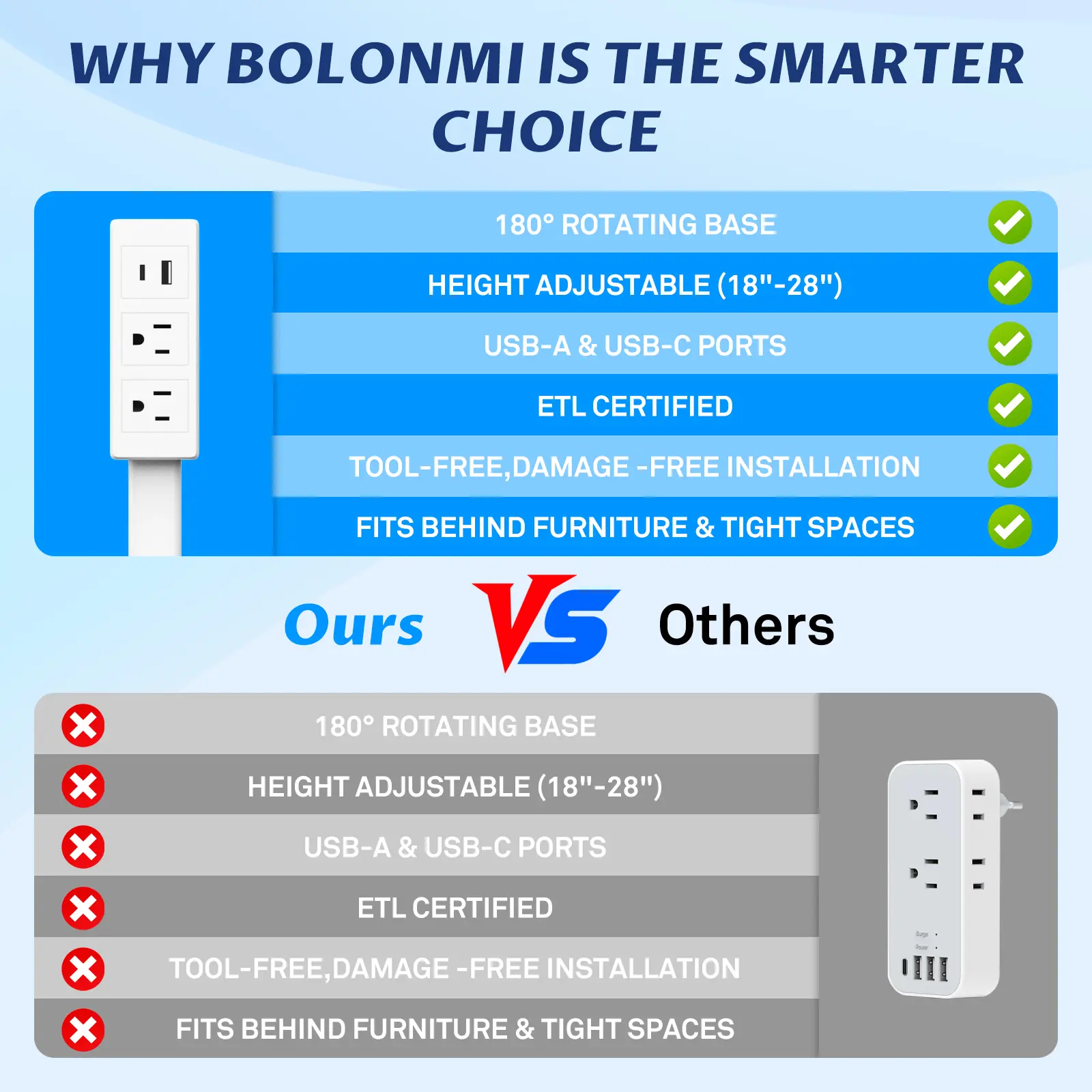 【Portable & Space-Saving】This extendable rotating outlet extender stick is compact, lightweight, and easy to carry—perfect for apartments, dorm rooms, home offices, and travel. Reduce cable clutter, minimize cord tangling, and keep your space clean and efficient.
