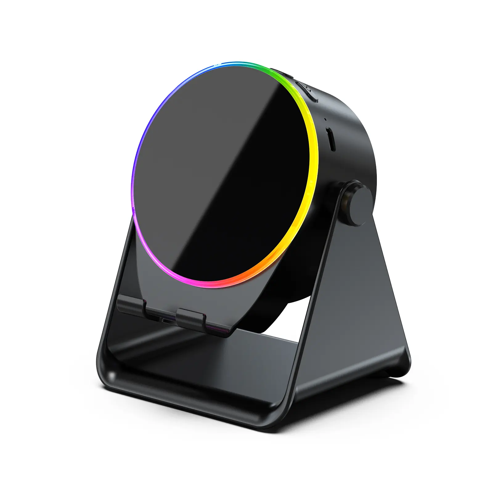 Features a unique and fun 4-in-1 design: A multifunctional device that combines wireless induction speaker,bluetooth speaker, cell Phone Stand, and ambient light that delivers high-definition stereo surround sound at any volume level for an enhanced audio experience.