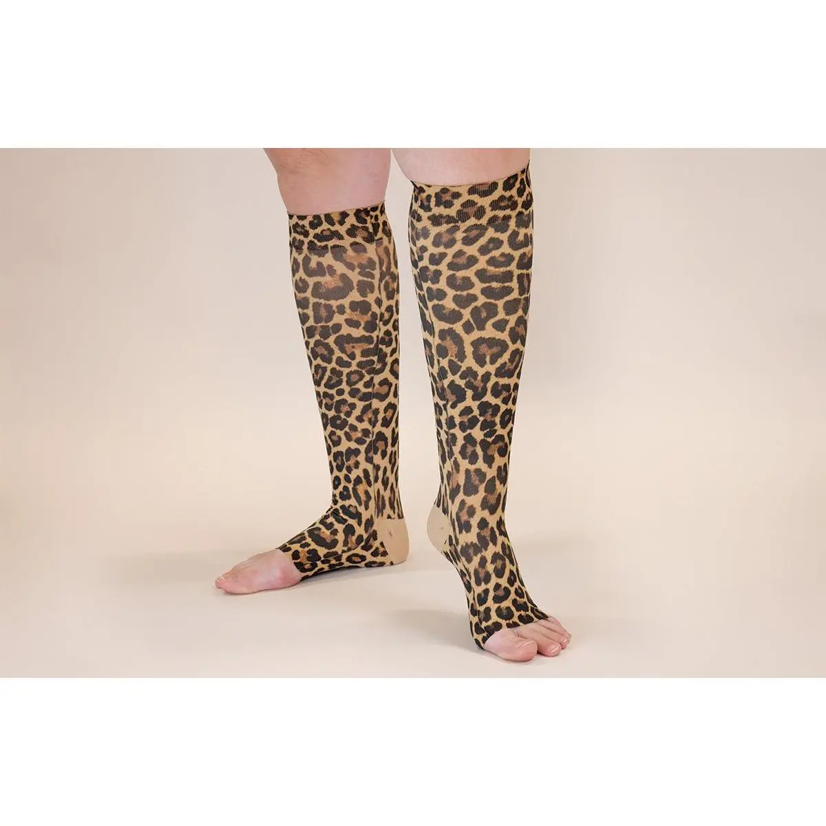 Leo Leopard Gradient Compression Socks combine bold animal-print style with therapeutic support. Featuring 15-20, 20-30, or 30-40 mmHg graduated compression, these USA-made socks enhance circulation while managing lymphedema and leg swelling. Crafted from soft microfiber with 4-way stretch and moisture-wicking technology, they keep feet cool and dry. Infused with X-Static© silver for permanent antimicrobial protection, plus a floating heel design and non-constricting band for all-day comfort. Recover in confidence.