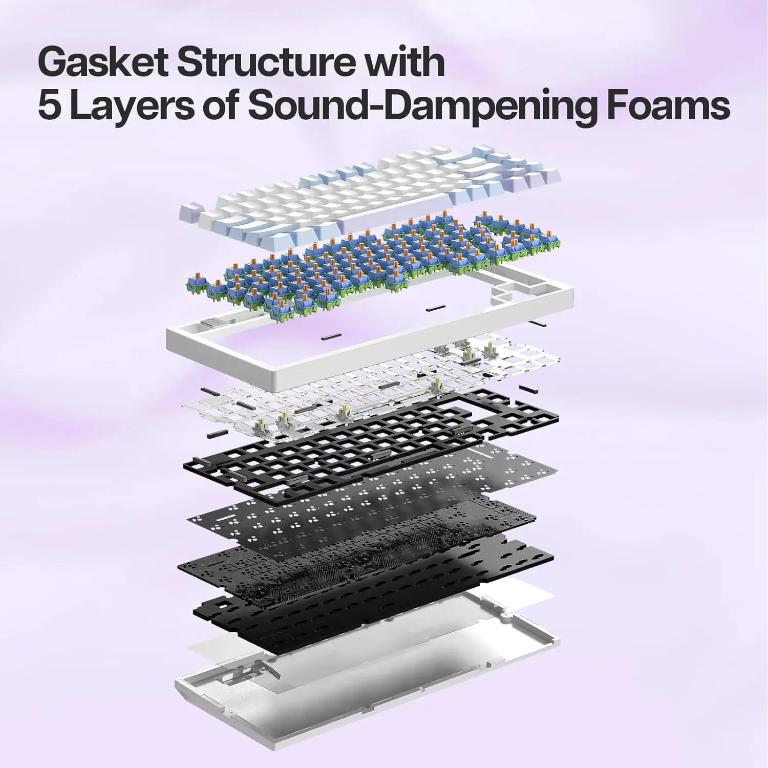 ·Sleek 75% Layout for Enhanced Efficiency: Designed with a sleek 75% layout, Hi75 compact keyboard offers a compact form factor without compromising on functionality. With 81 essential keys, striking an ideal balance between minimalistic design and full functionality. This layout ensures you have every key you need, without overwhelming your space. The carefully crafted layout provides an optimal typing and gaming experience, allowing you to reach all the essential keys conveniently and efficiently. Moreover, the ingenious GASKET design, complemented by PORON gaskets, significantly minimizes cavity sound, enhancing your typing sounds