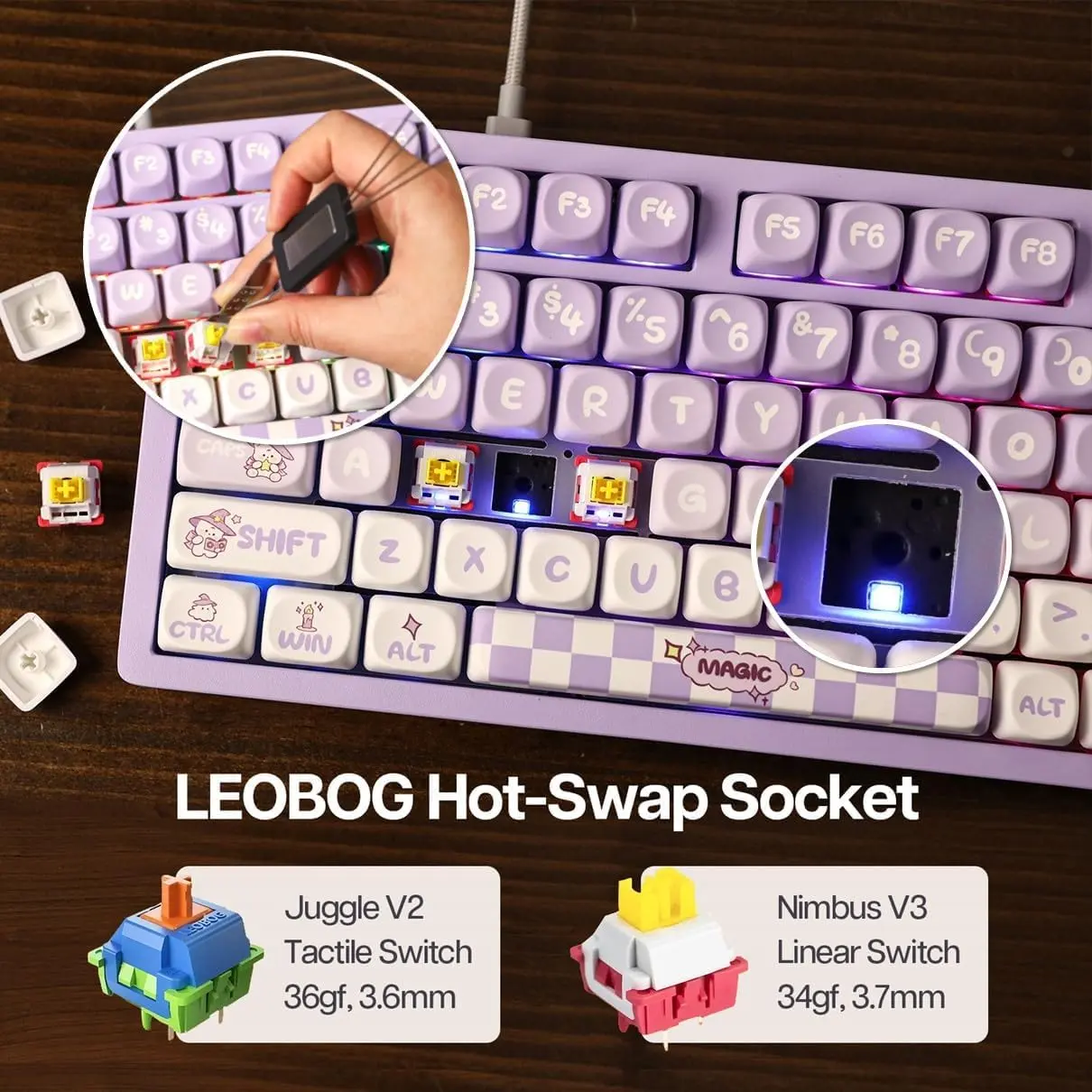 ·Seamless Connectivity and Full Key Hot-Swap Capability: Plug, Play, Perform: The Hi75 boasts a hassle-free Type-C interface, accompanied by an extendable spring data cable ranging from 1.8 to 2 meters. This design guarantees effortless setup and flexibility, allowing you to start typing immediately with no additional configuration. Experience the pinnacle of keyboard design with the EPOMAKER x LEOBOG Hi75. Additionally, the full key hot-swap capability allows you to easily replace and customize switches without soldering. With compatibility for most 3/5-pin switches, giving you the freedom to personalize your keyboard according to your preferences