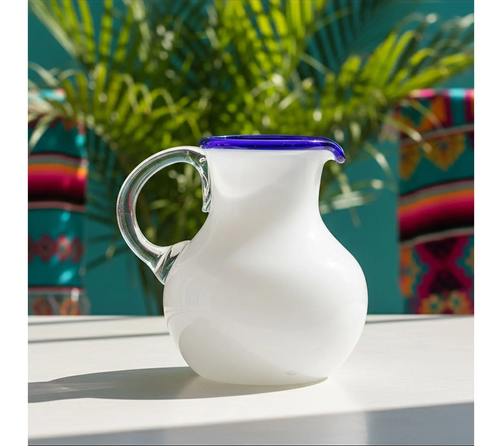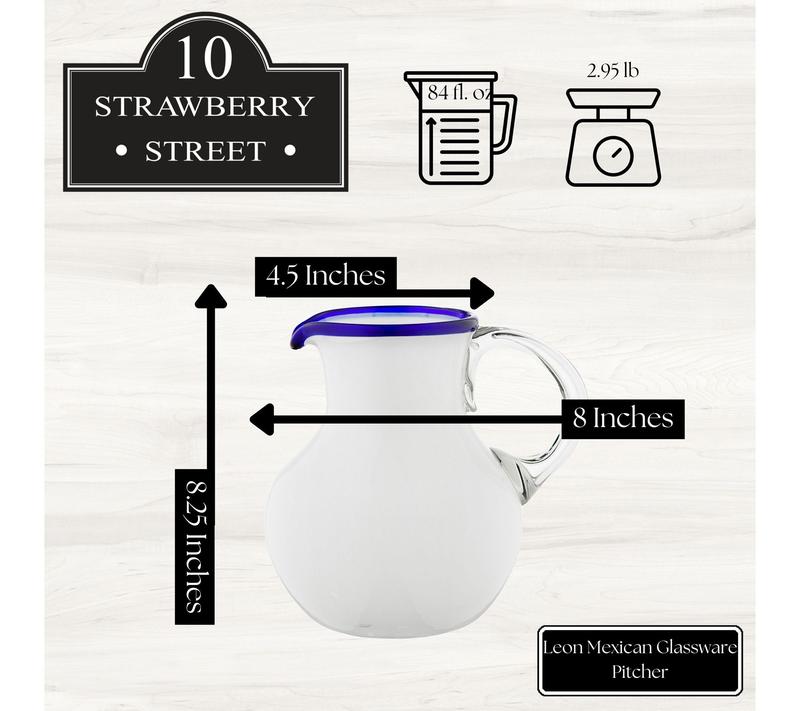 Refresh any gathering with this Leon Mexican Glassware Pitcher, perfect for serving your favorite summer sangria, citrusy agua fresca, or classic iced tea. The vibrant style and generous size make it easy to keep everyone's glass full -- whether you're hosting brunch on the patio or a festive dinner indoors. From 10 Strawberry Street.