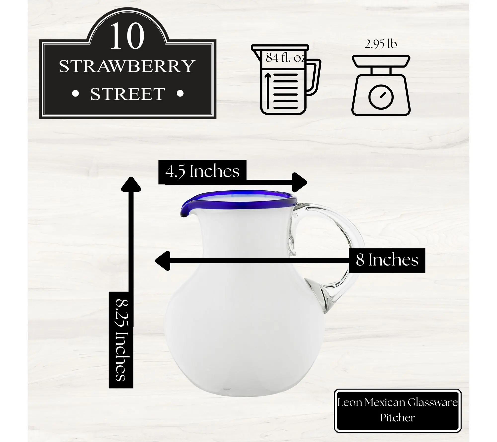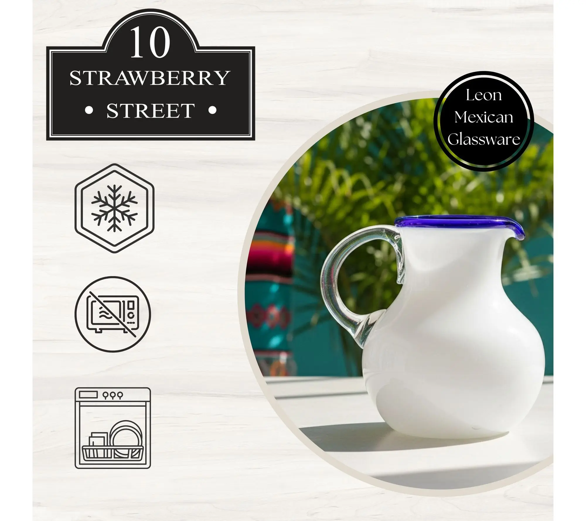 10 Strawberry Street Leon Mexican Glassware Pitcher