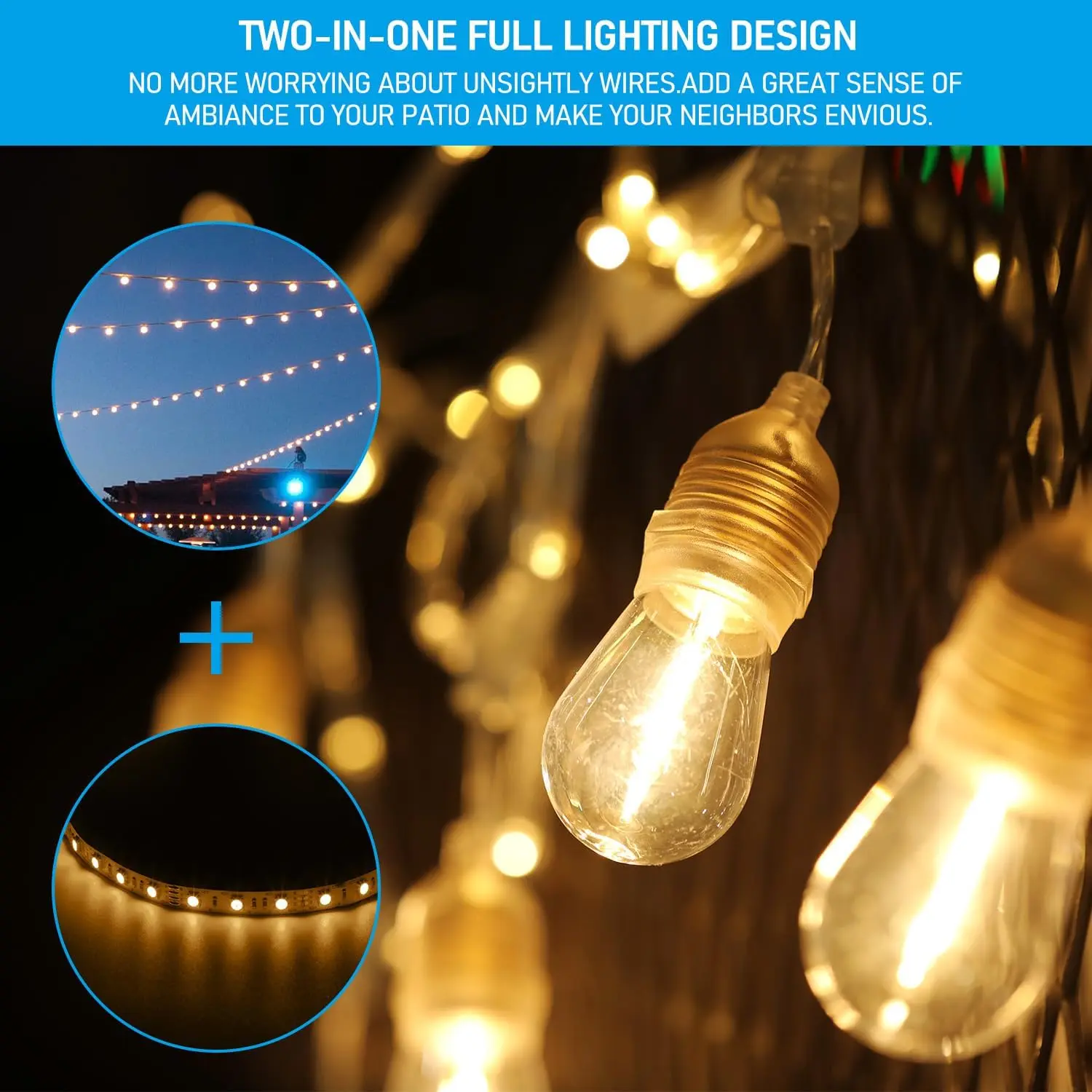 ·Full Lighting Design: The 2-in-1 design of the led string light and clear fairy neon light string makes this outdoor string light free from the trouble of unsightly wires. Day or night, it gives you a great visual experience and creates a cosy atmosphere.