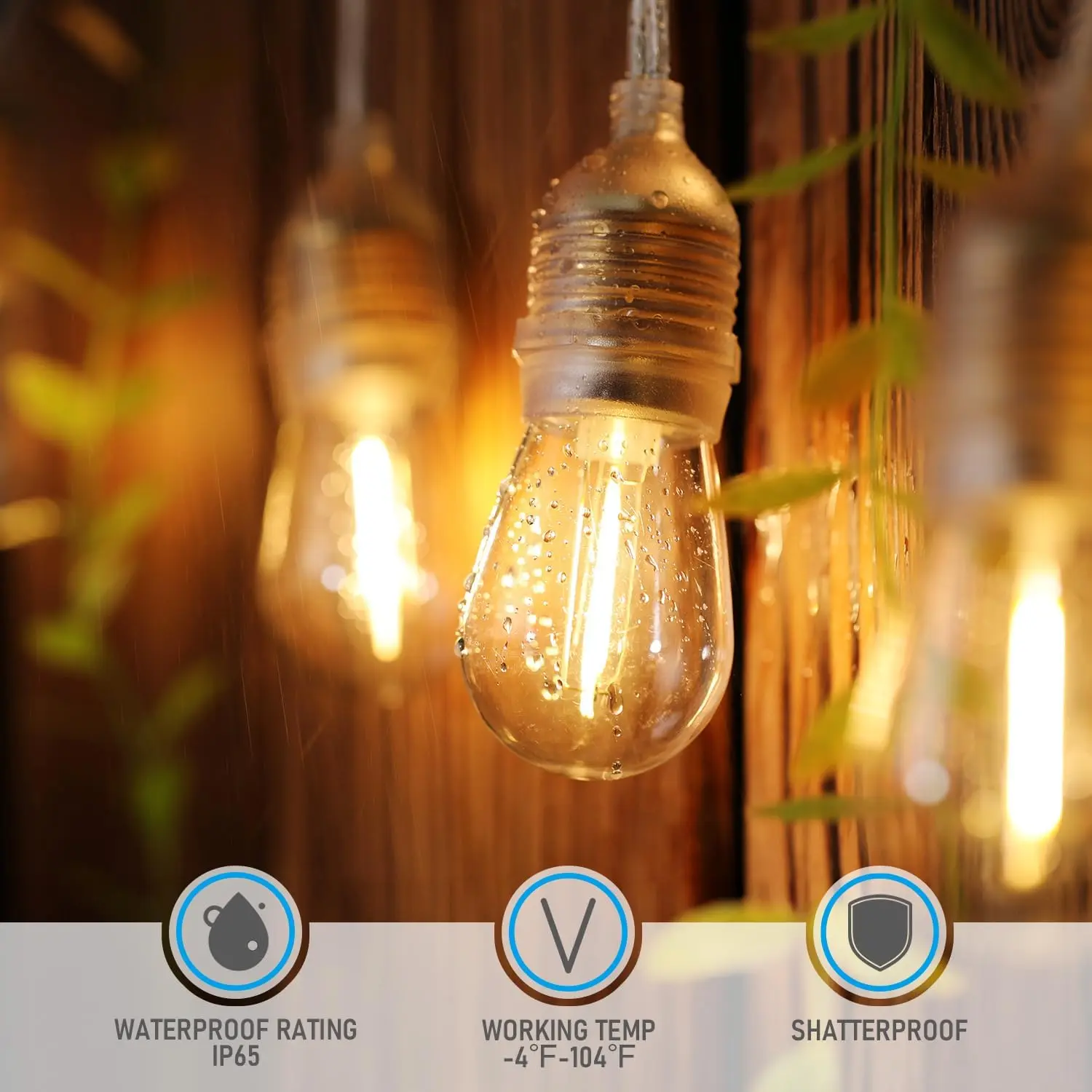 ·Outdoor Using Available: Its high IP65 waterproof allows it to withstand the heavy rain in Florida and the coldest snow in Pennsylvania. 24 S14 2700K soft white 1W LED bulbs are included
