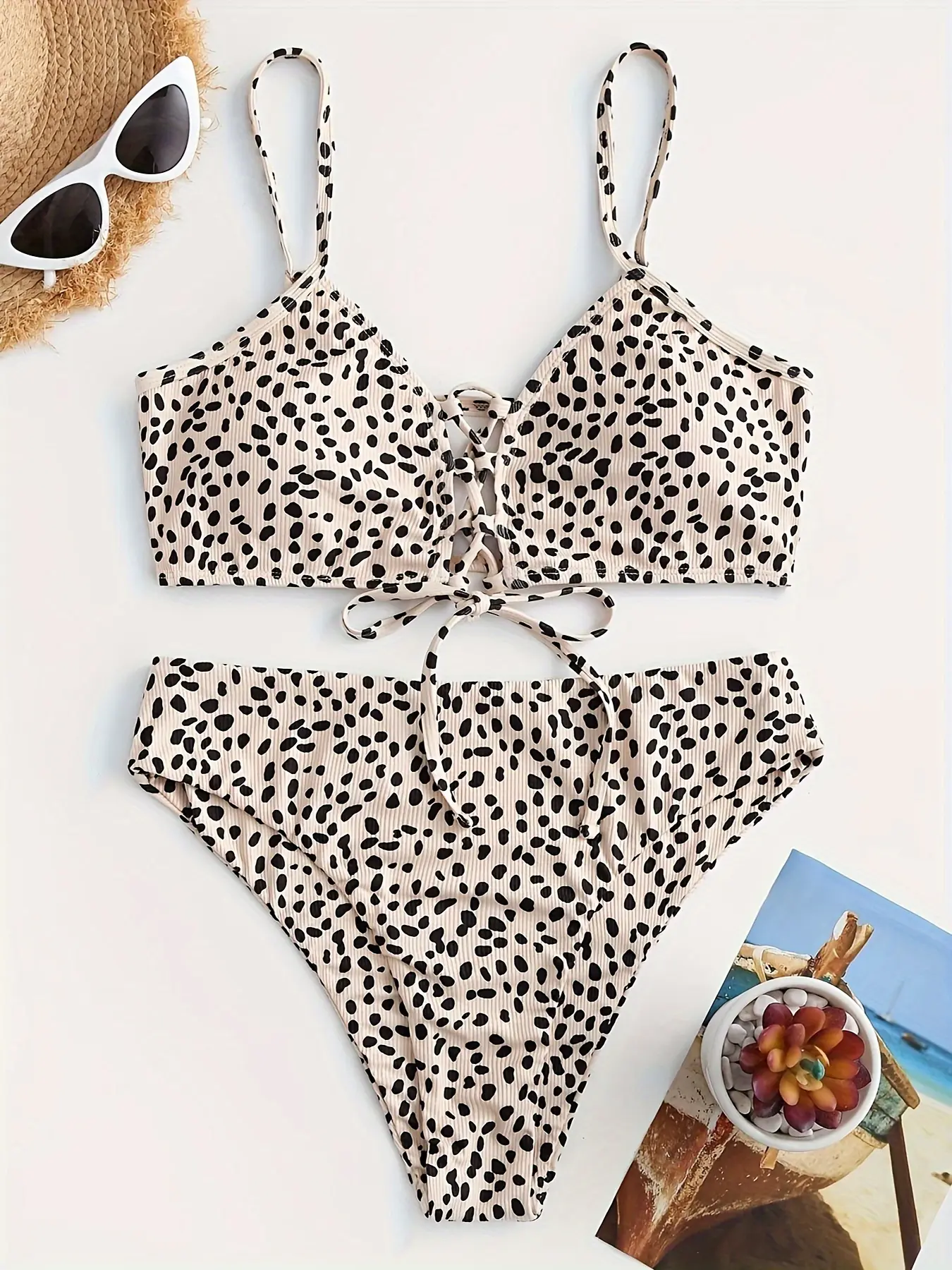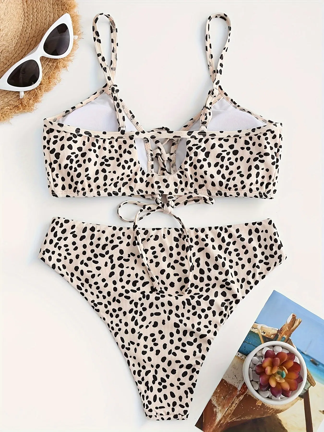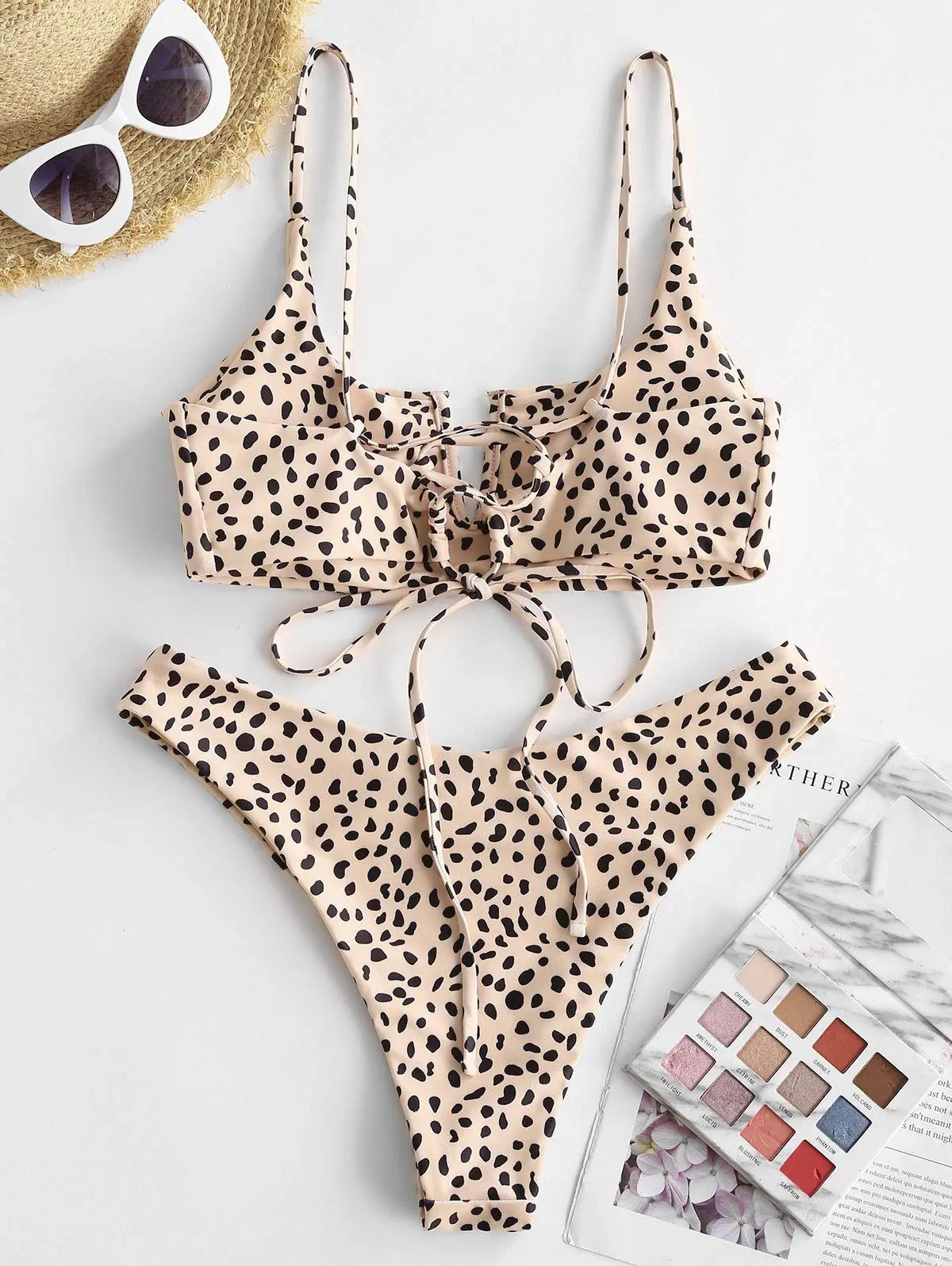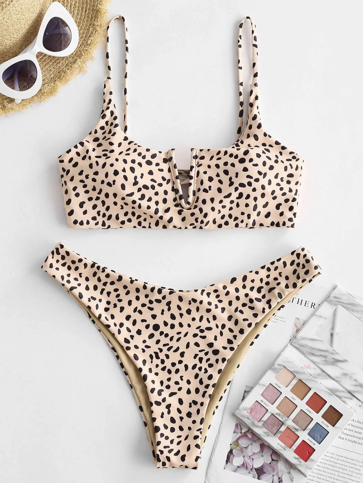 ·The leopard printed swimsuit features with sexy braided v-wired top and high cut cheeky bottom, so it makes you look more charming and sexy and perfectly show off your curve.