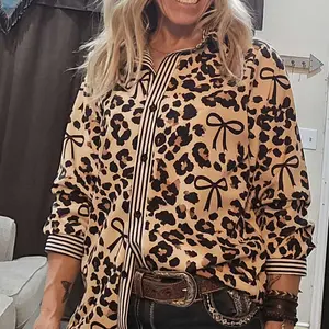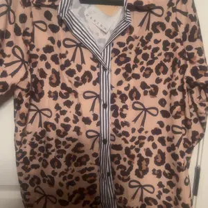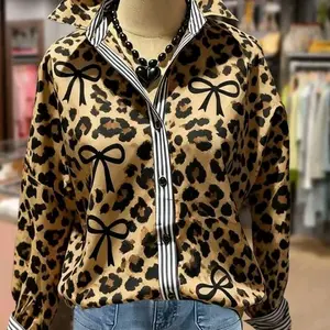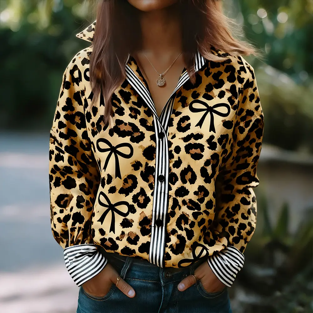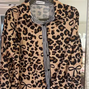 ⭐️⭐️⭐️⭐️⭐️ I love this blouse! Every time I wear it, I get so many compliments. The leopard print, bow details, and striped collar make it stylish and unique. Great quality and workmanship too—comfortable, flattering, and now one of my favorite pieces!