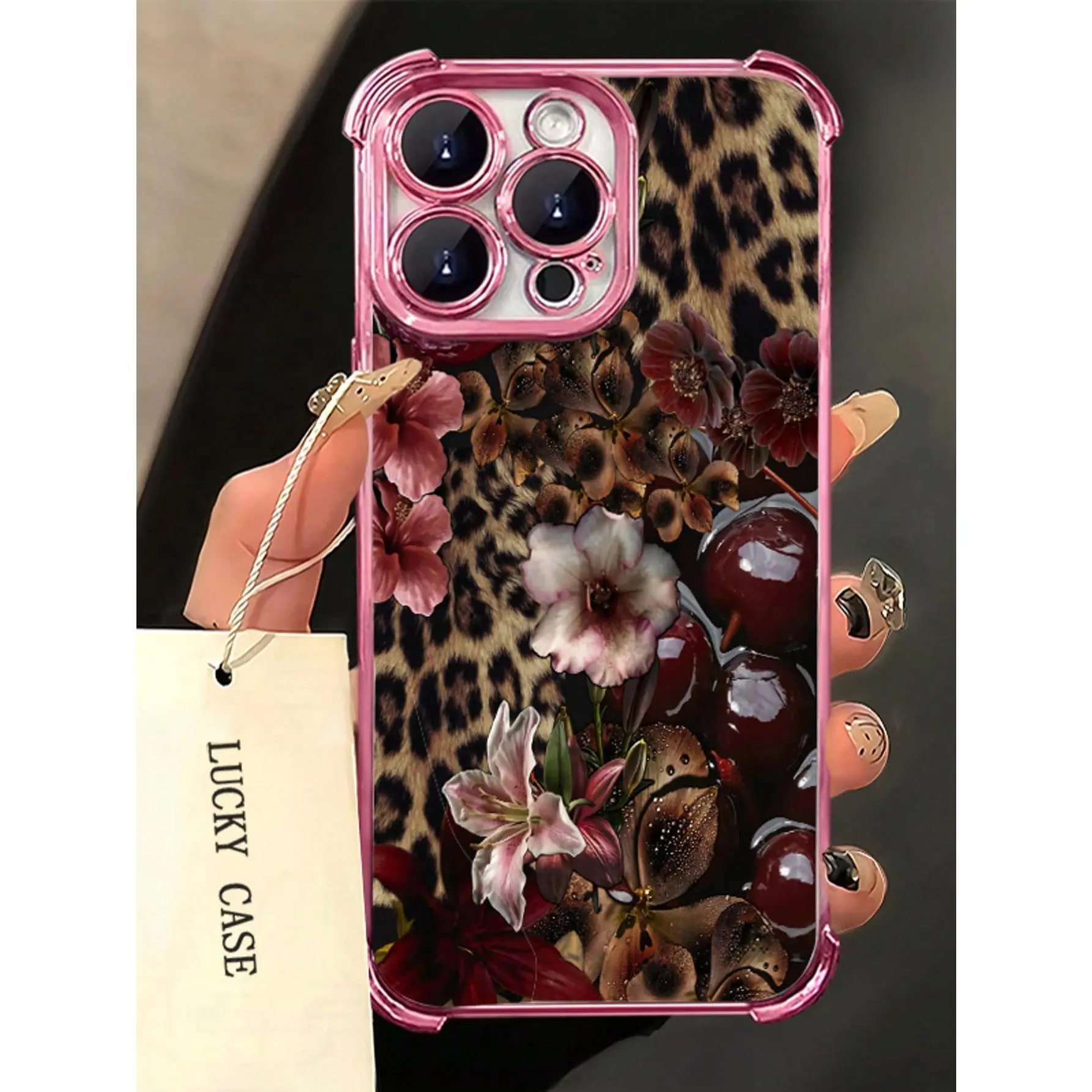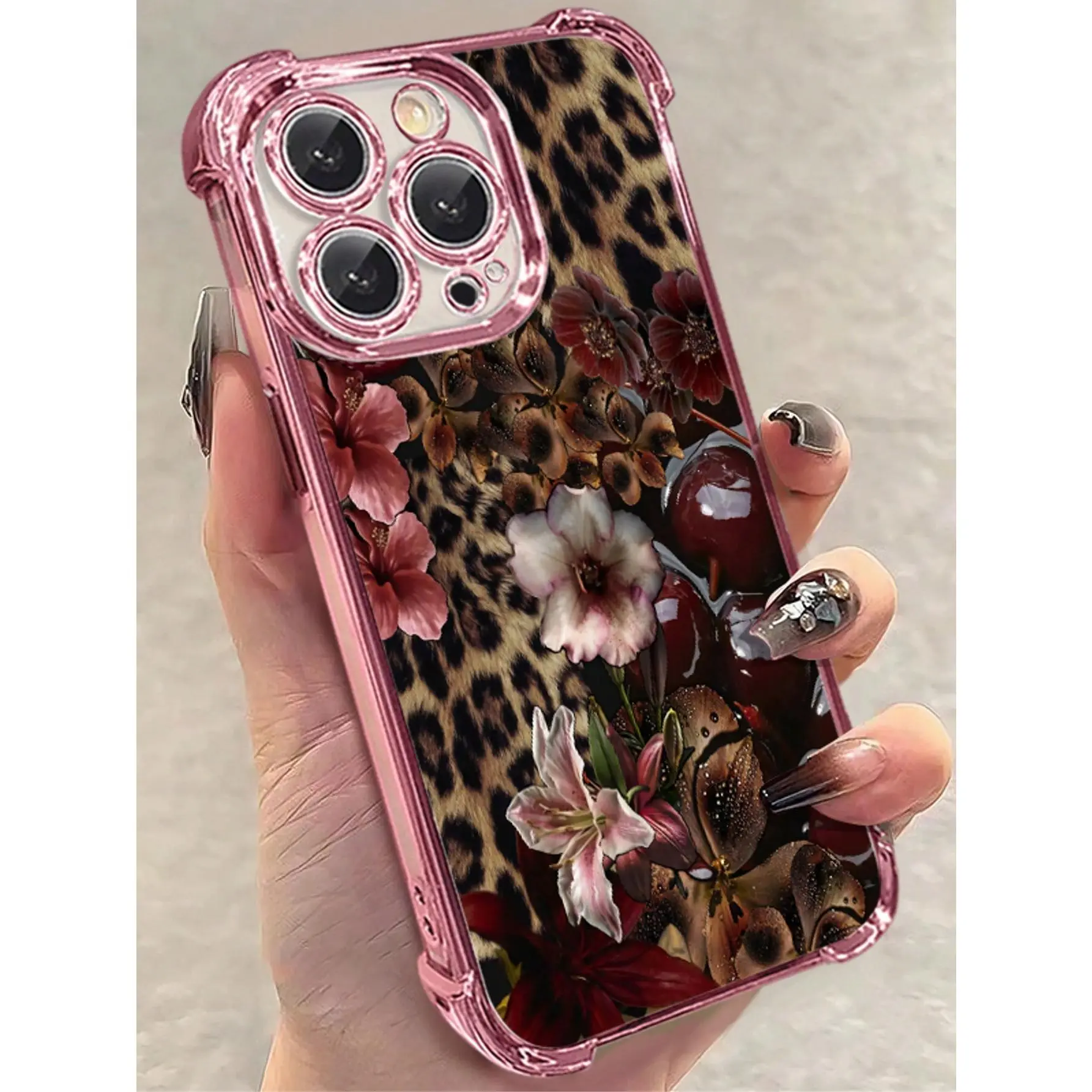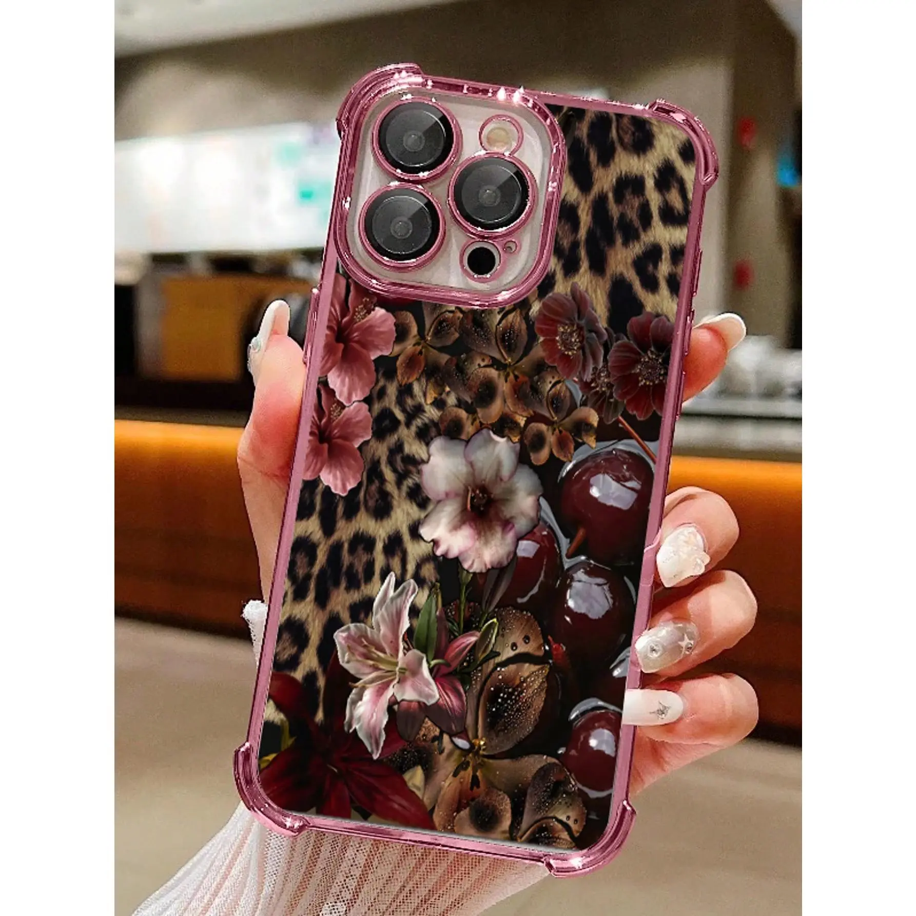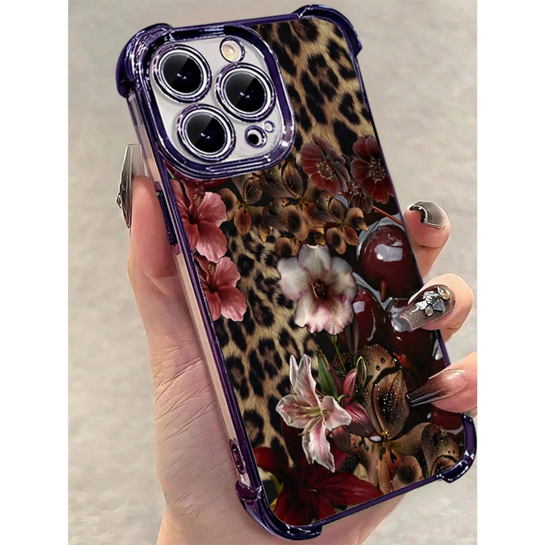 1pc Leopard Cherry Flowers Compatible With Apple Phone17/16/15/14/13/12/11/ProMax/Pro/Plus/Xs Max/XS/X,Four Corner Anti Fall Transparent Soft Shell Anti-Slip, Anti-Drop, Camera Lens Protection, Silicone Anti Wear Phone Case