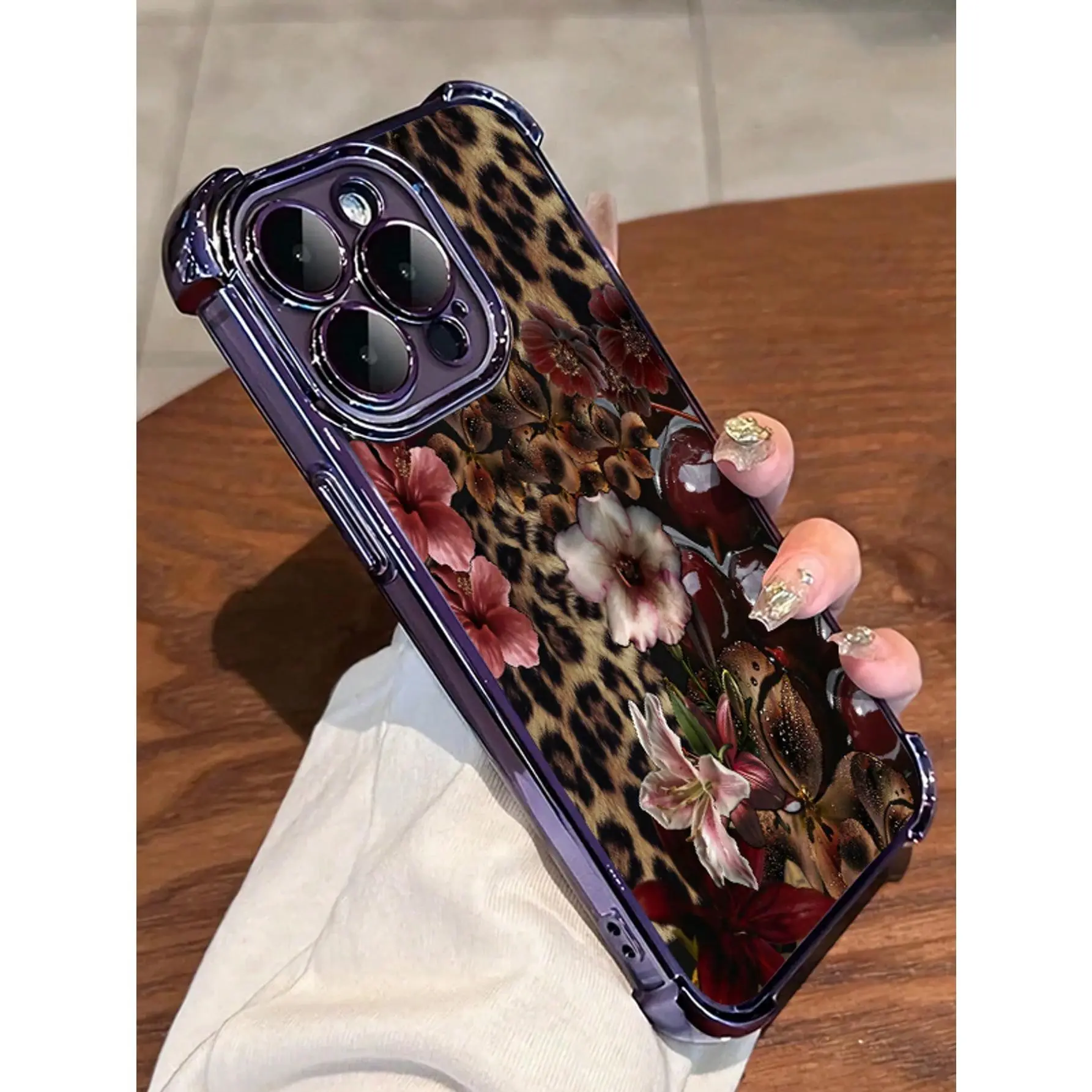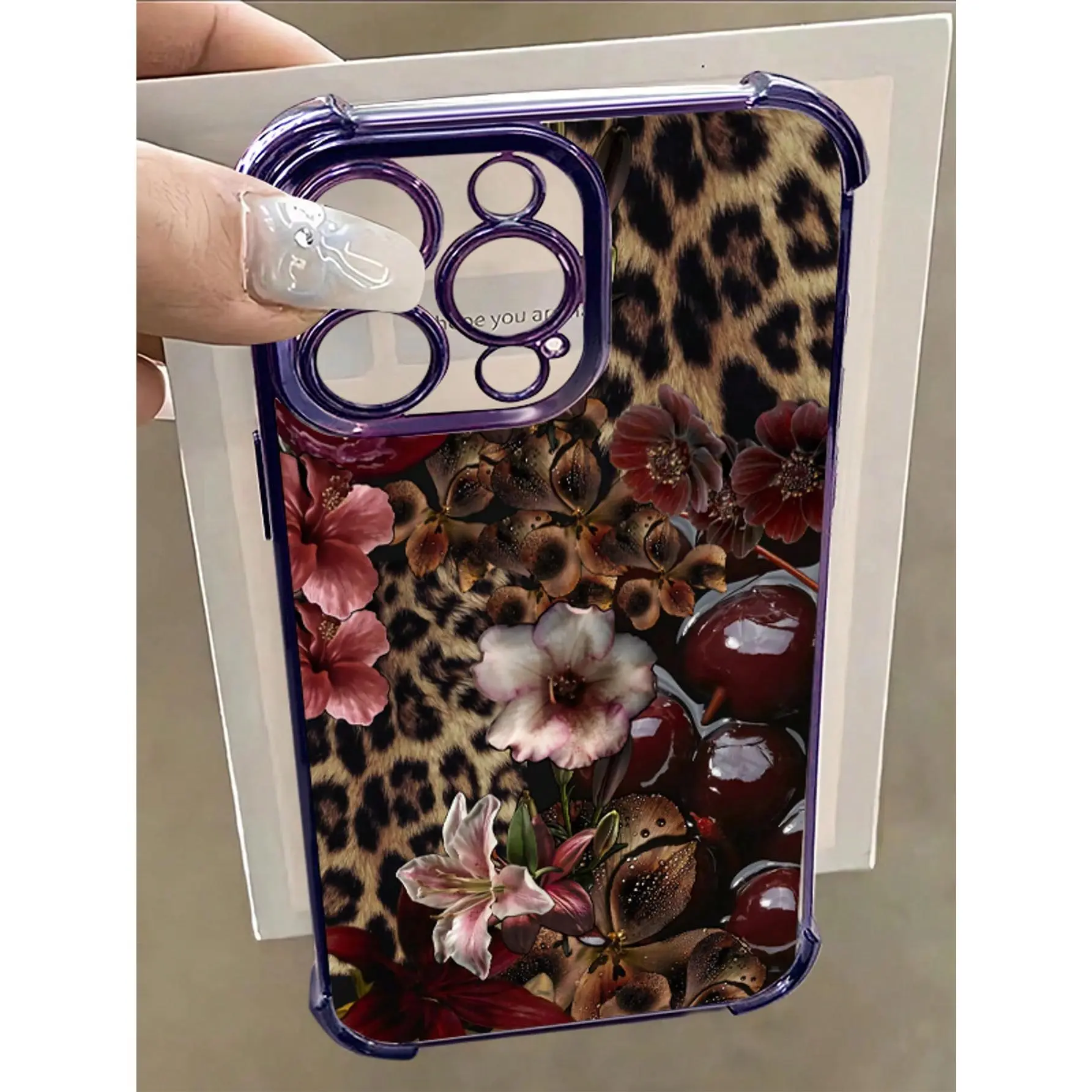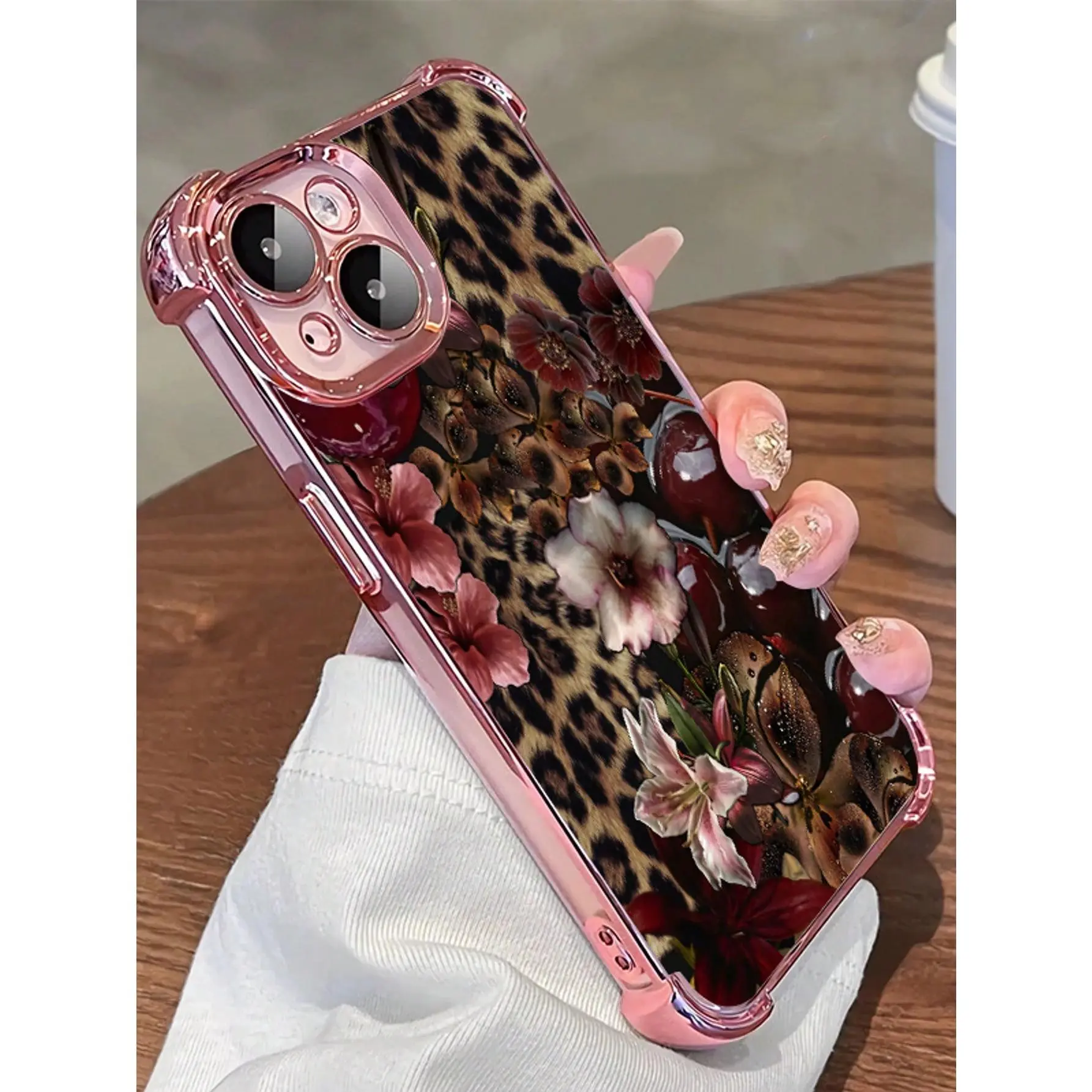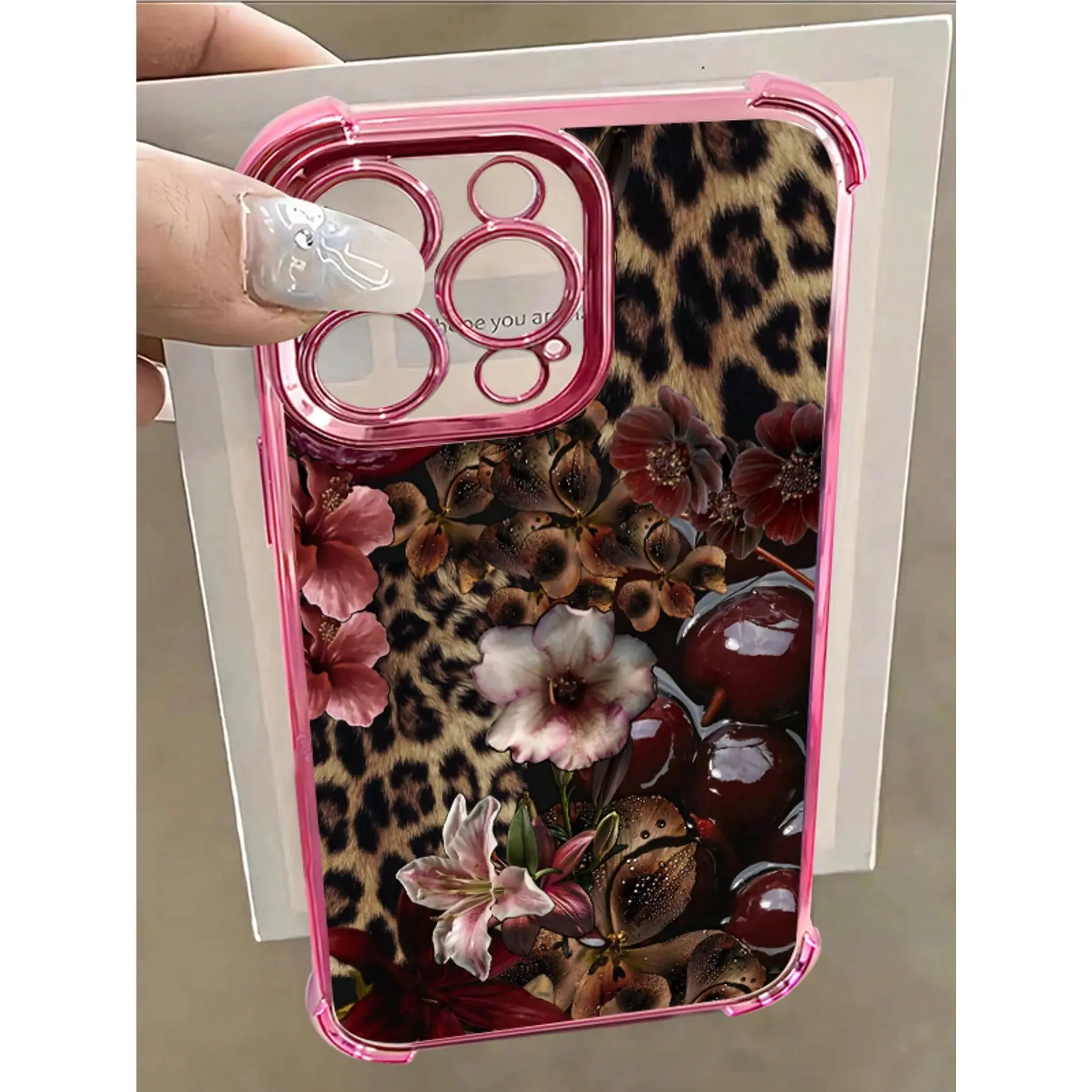 1pc Leopard Cherry Flowers Compatible With Apple Phone17/16/15/14/13/12/11/ProMax/Pro/Plus/Xs Max/XS/X,Four Corner Anti Fall Transparent Soft Shell Anti-Slip, Anti-Drop, Camera Lens Protection, Silicone Anti Wear Phone Case