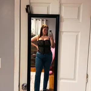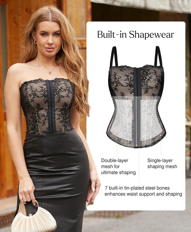 This corset is beautiful but keep in mind that the back is short and the front is longer. For me, if I’m not wearing something that comes high enough in the back, the bottom of the shirt will dig into my skin