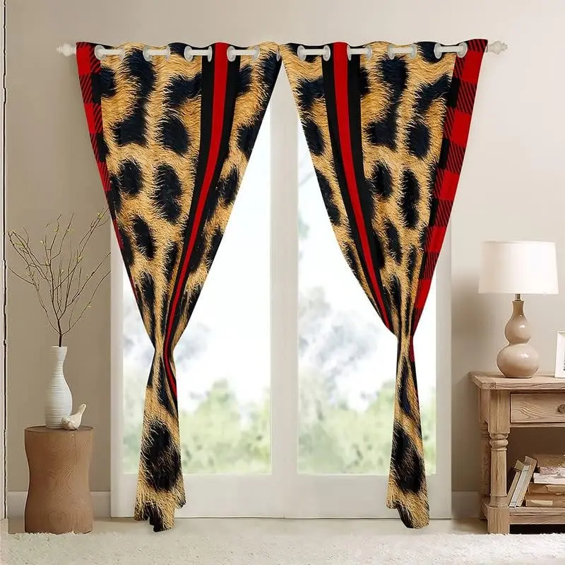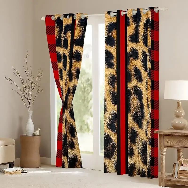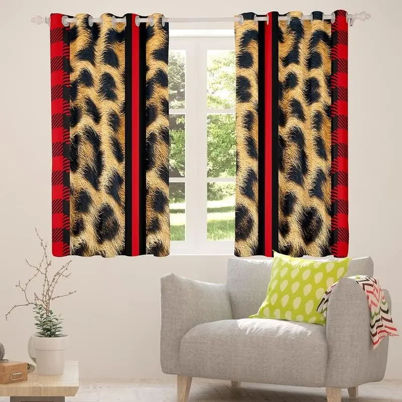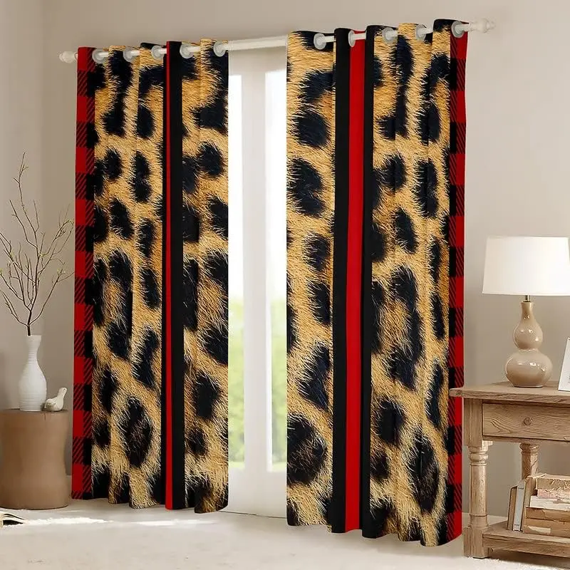 Leopard Curtains for Living Room,Cheetah Print Darkening Drapes,Red Stripe Blackout Curtains,Safari Window Treatments(2 Panels 42 x 63 Inch)
