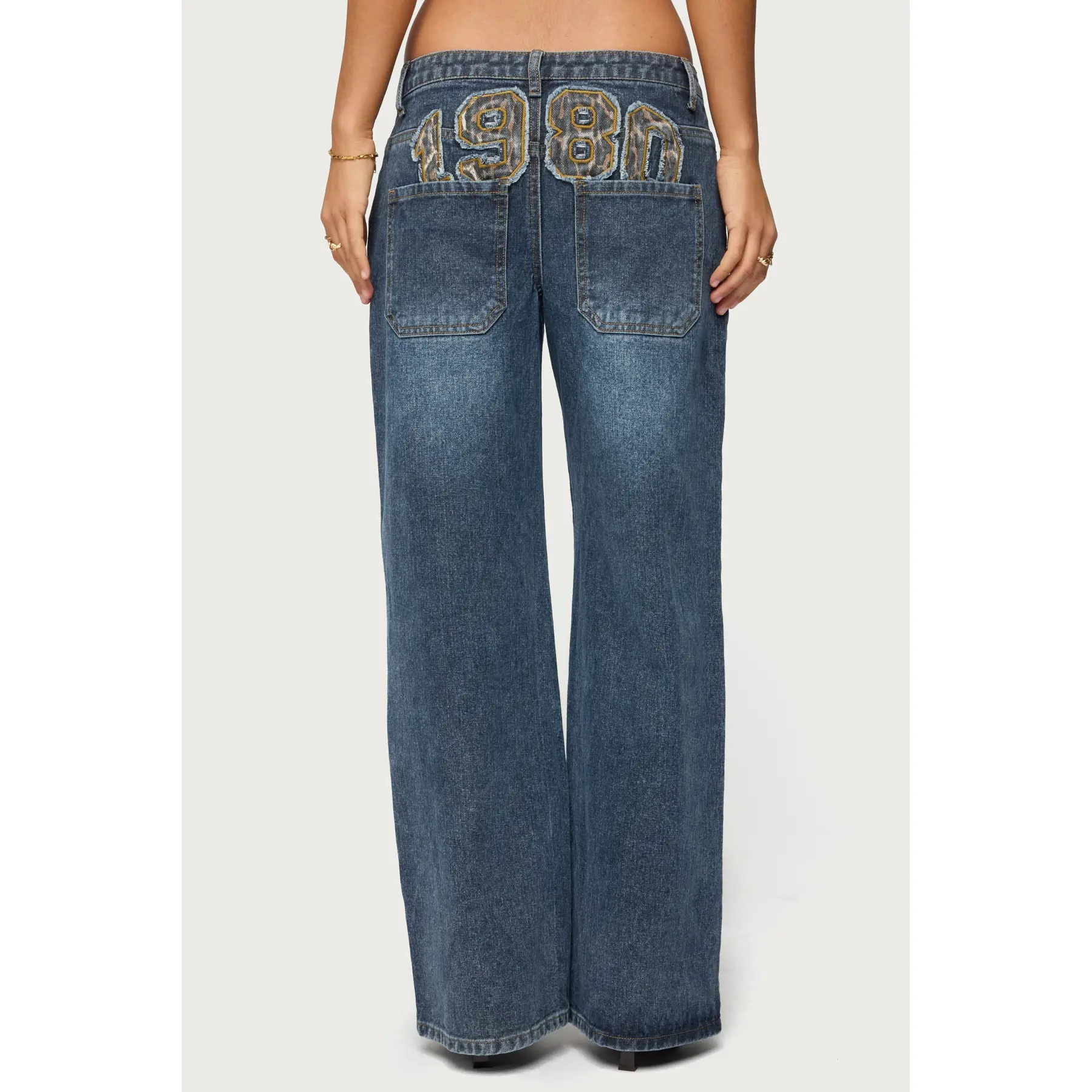 5. 1980 Leopard Patch Low Rise Baggy Jeans