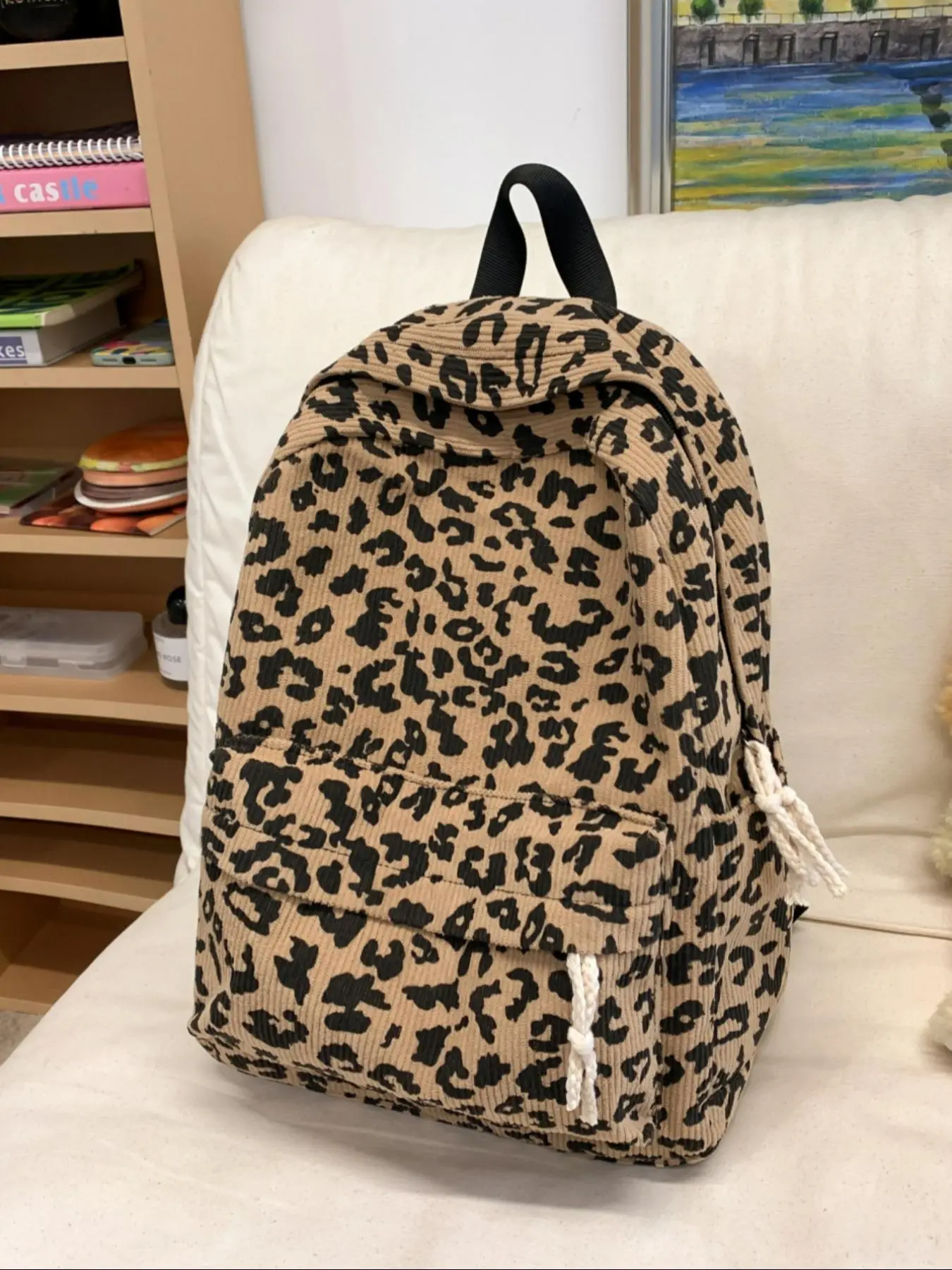 Fashion Leopard Pattern Backpack, Casual Large Capacity Backpack for Women, Lightweight Casual Commuting Bag for Daily Used, Casual Printed Backpack