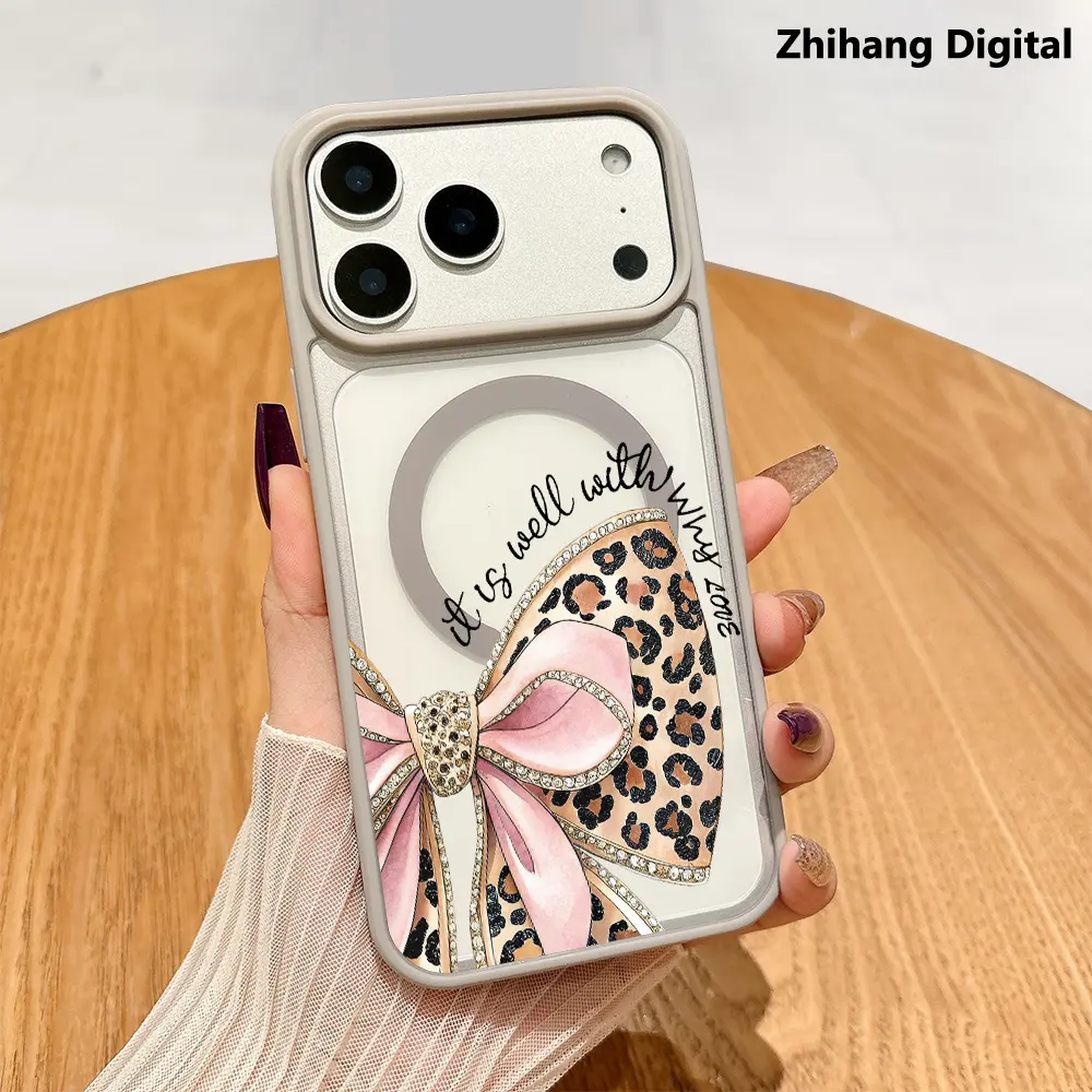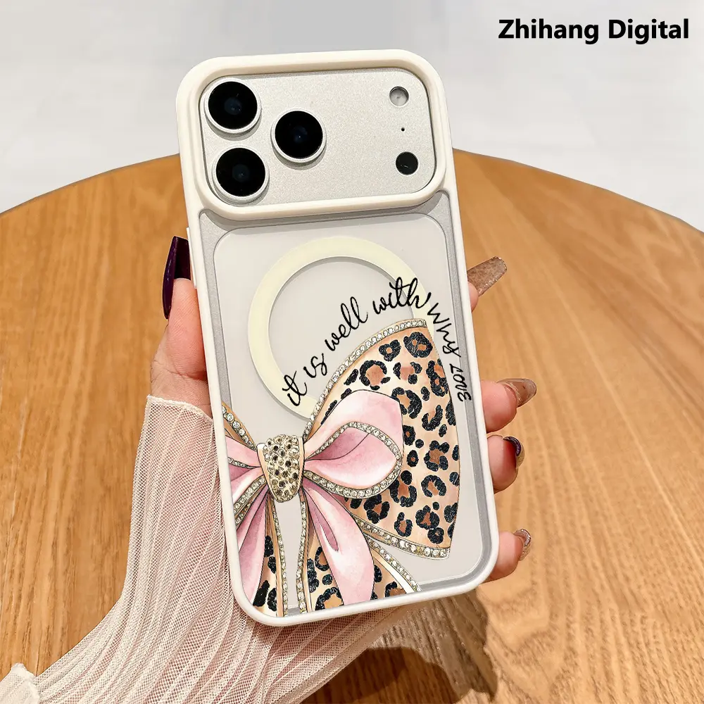 Leopard Print Bow Pattern Phone Case for iPhone 17 Pro Max Air 16 Plus 15 14Pro 13 12 11 Smartphone Magnetic Wireless Charging Compatible Protective MagSafe Support Shockproof Cover