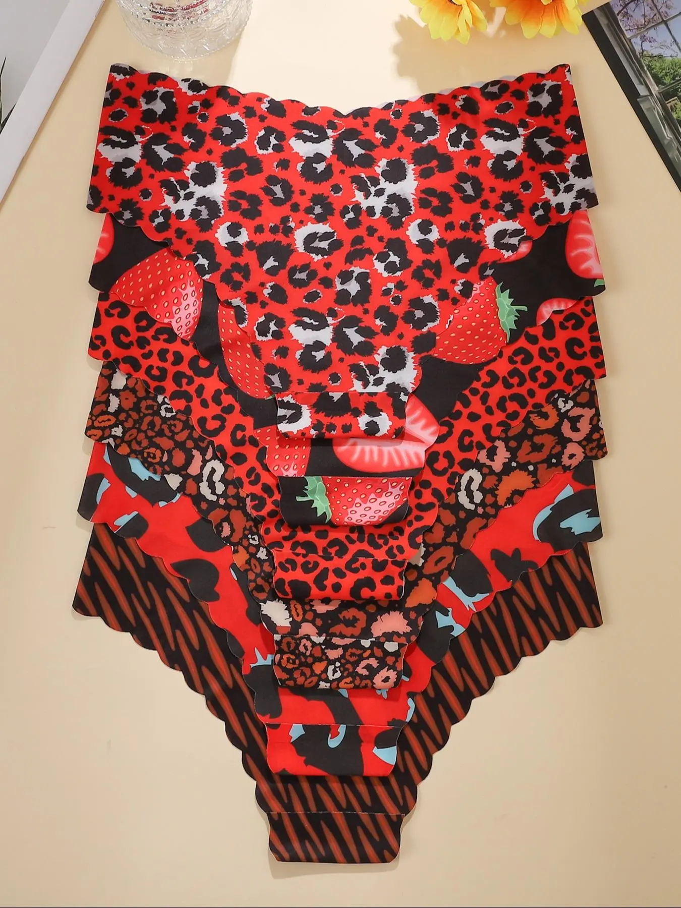 5. Women's Solid / Leopard Print Scallop Trim Brief, Soft Comfy Breathable Seamless Panty for Daily Wear, Women's Underwear for All Seasons, Solid Print Knicker