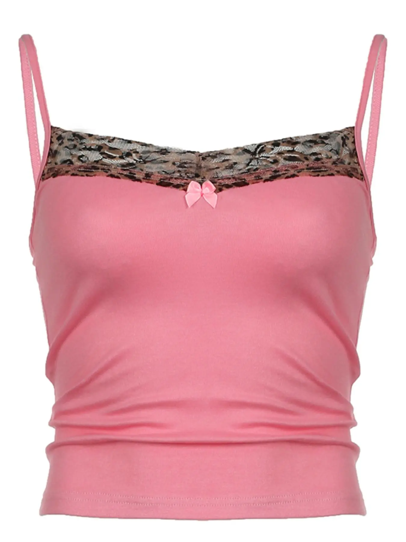 Women's Leopard Print Bow Decor Contrast Mesh Cami Top, Casual Spaghetti Strap Top for Summer, Ladies Clothes for Daily Wear, Casual Comfy Cami