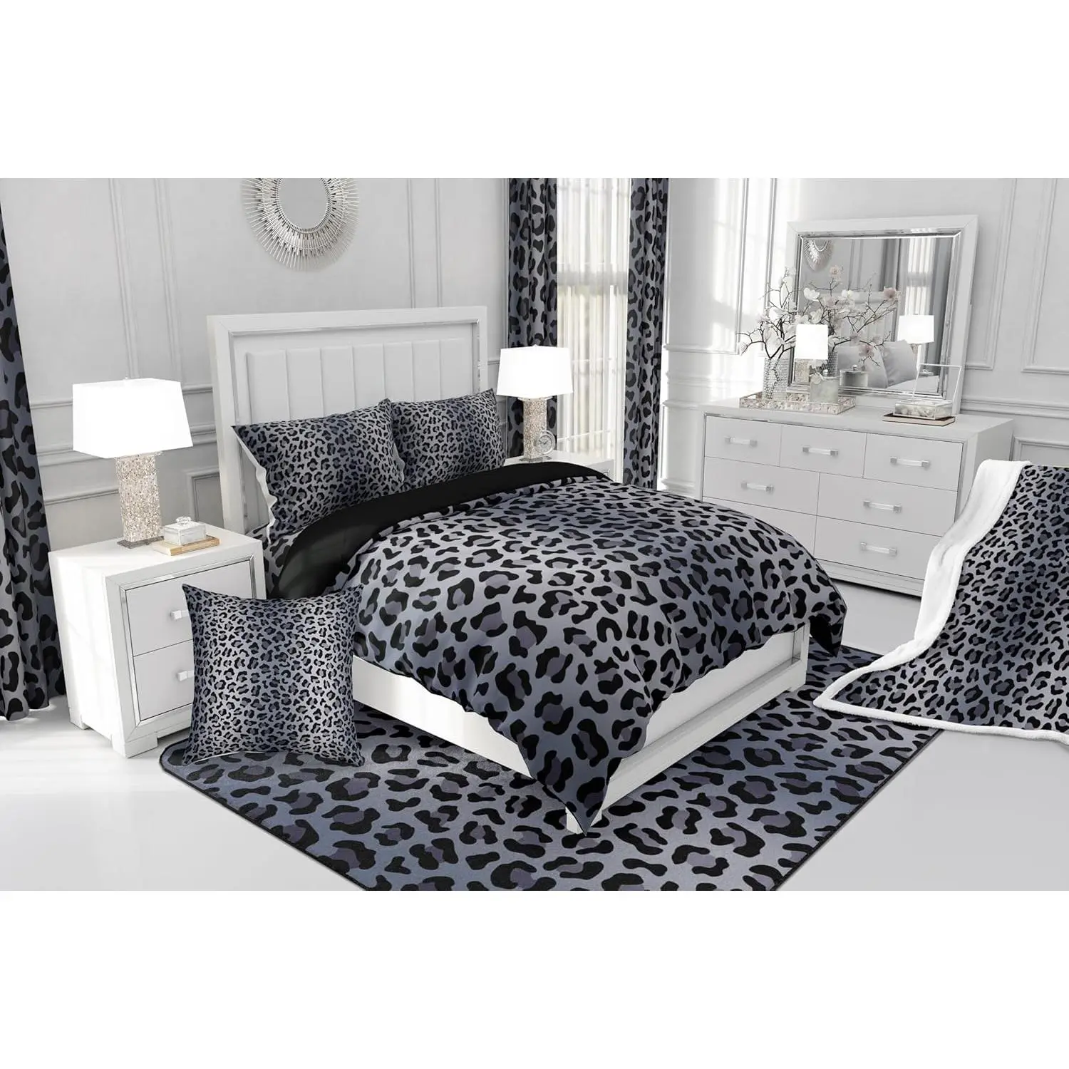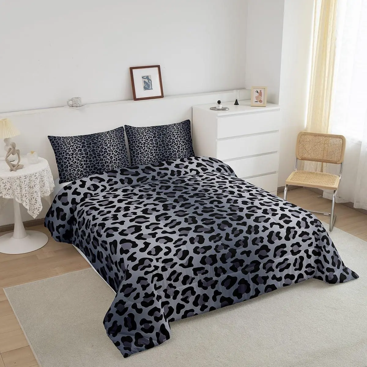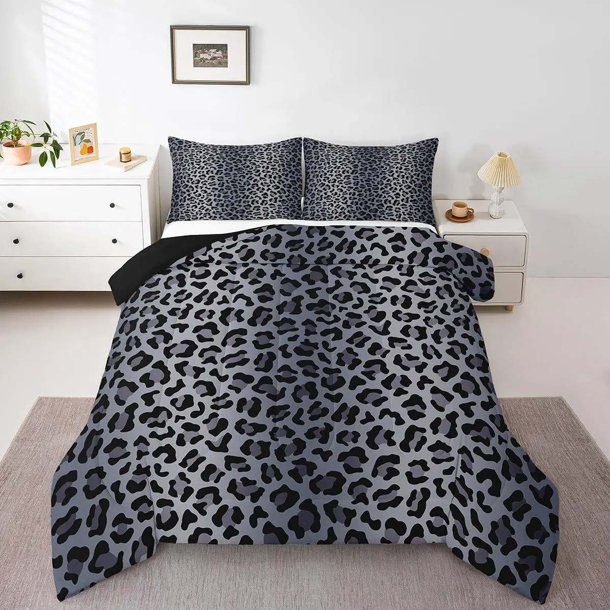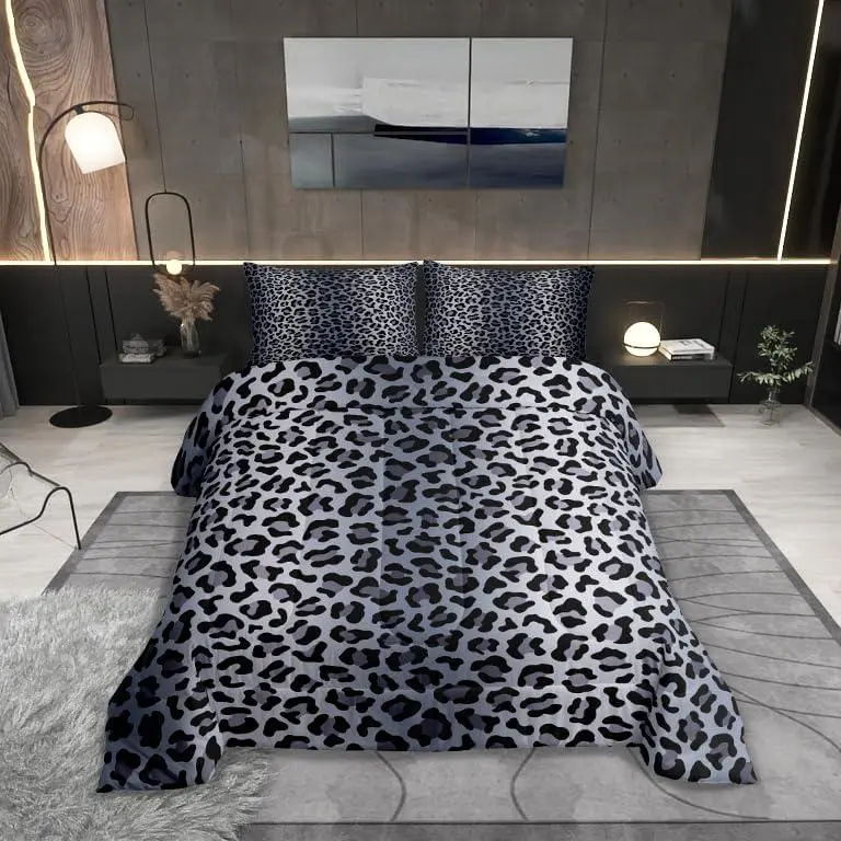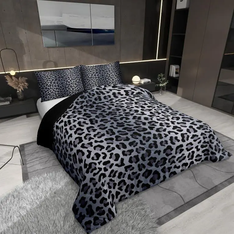 5. Leopard Print Comforter Set,Cheetah Fur Print Duvet Setsoft Bed Collection,Grey Black Leopard Bedding Boys Girls Bedroom