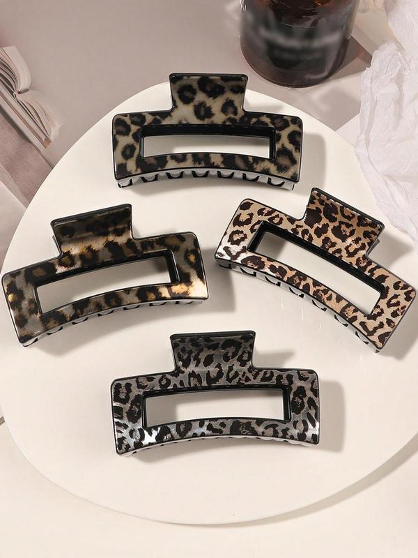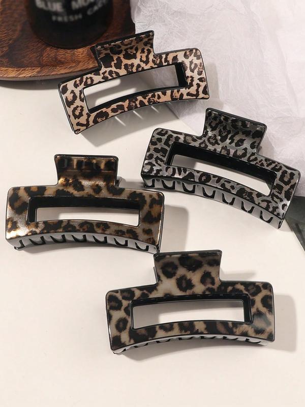 5. 4pcs/Set Medium Leopard Print Square Hair Claws, Versatile Plastic Square Hair Clips, Damage-Free Hair Accessory, Leopard Hair Claw, Suitable For Daily Wear, Parties, Gifts, Autumn/Winter Valentine's Day,Hair Accessories,Claw Clips,Hair Jaw Clip