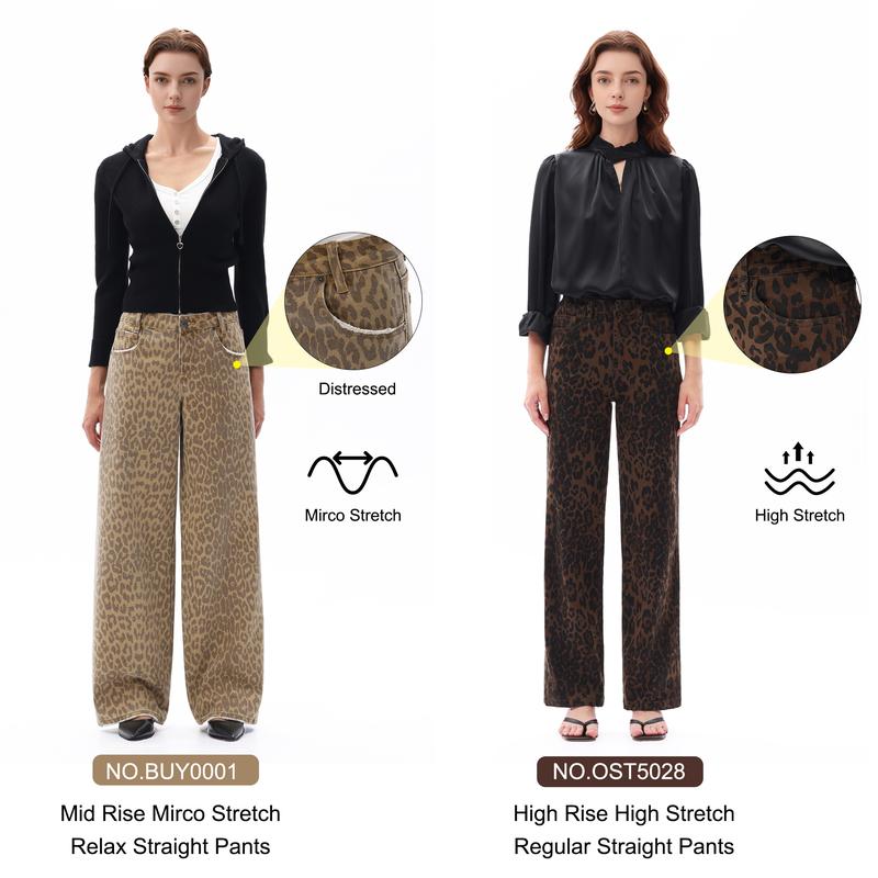 I have so many leopard jeans and these are my favorite, they fit great in all the right places , perfect wide leg which is hard to do, I would suggest to size down , I did and glad I did . Perfect