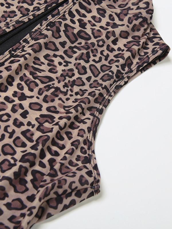 Women's Leopard Print Jumpsuit, Skinny Jumpsuit, Fashion Casual Sexy Jumpsuit for Daily Outdoor Wear, Women Jumpsuits for Summer