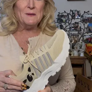 This walking shoes are unique with the leopard print backing on the shoe. I also like the thick soles for added foot support. The sides of the shoe are mesh between the striping allowing your feet to breathe. I ordered a size 7.5 which is what i always wear and they fit great. VERY HAPPY W/PURCHASE!