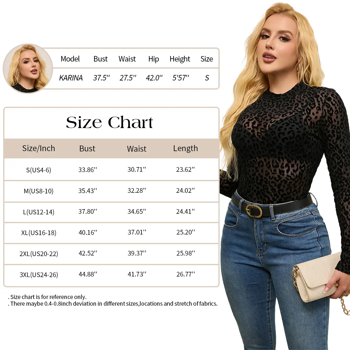 Design: This women's mesh top features leopard print, long sleeves, a stand collar, and a transparent mesh material for a sleek and versatile look