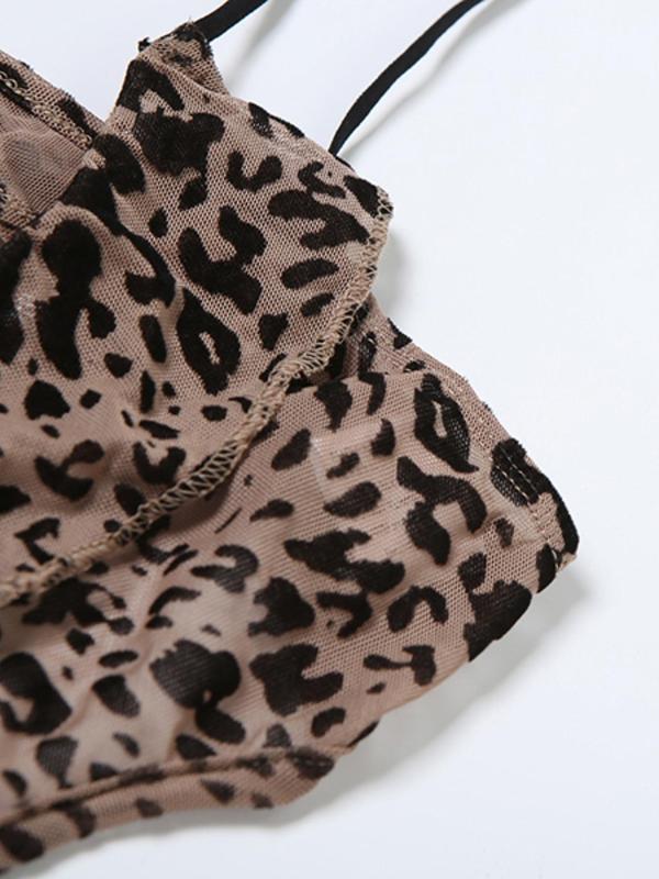 Women's Leopard Print Romper, Fashion Casual Hollow Out Sleeveless Romper for Daily Outdoor Wear, Women Clothing for Summer, Womenswear, Sleeveless Strap Overalls