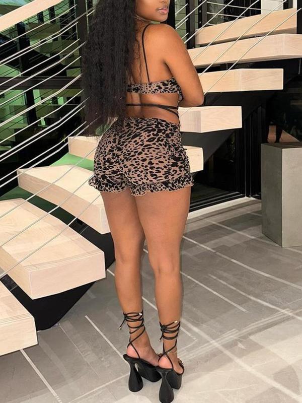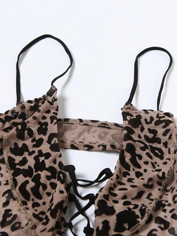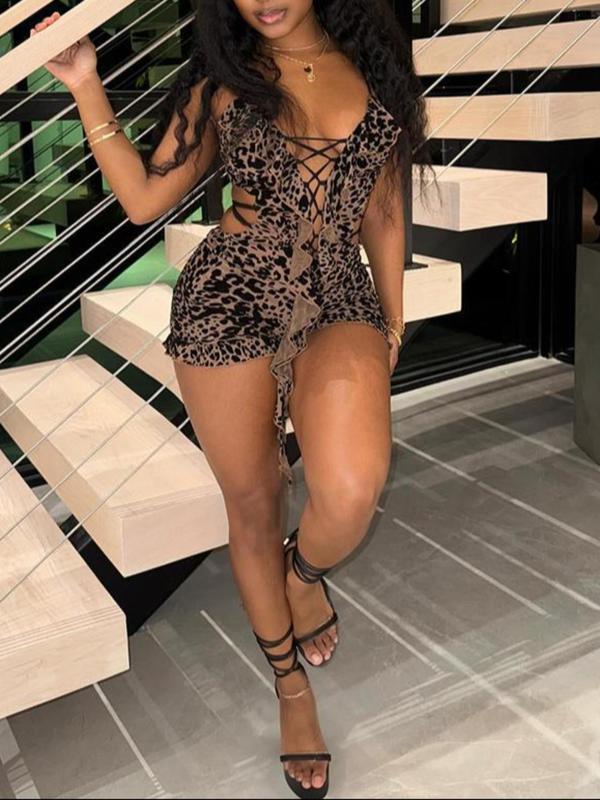 5. Women's Leopard Print Romper, Fashion Casual Hollow Out Sleeveless Romper for Daily Outdoor Wear, Women Clothing for Summer, Womenswear, Sleeveless Strap Overalls