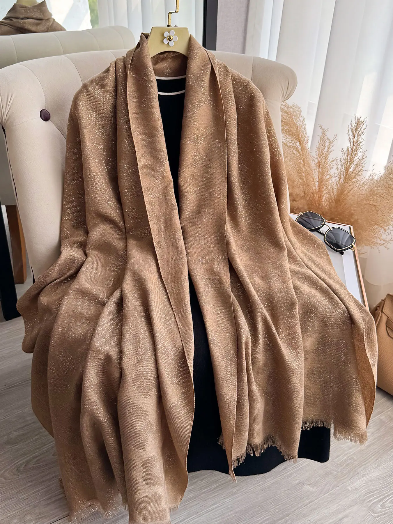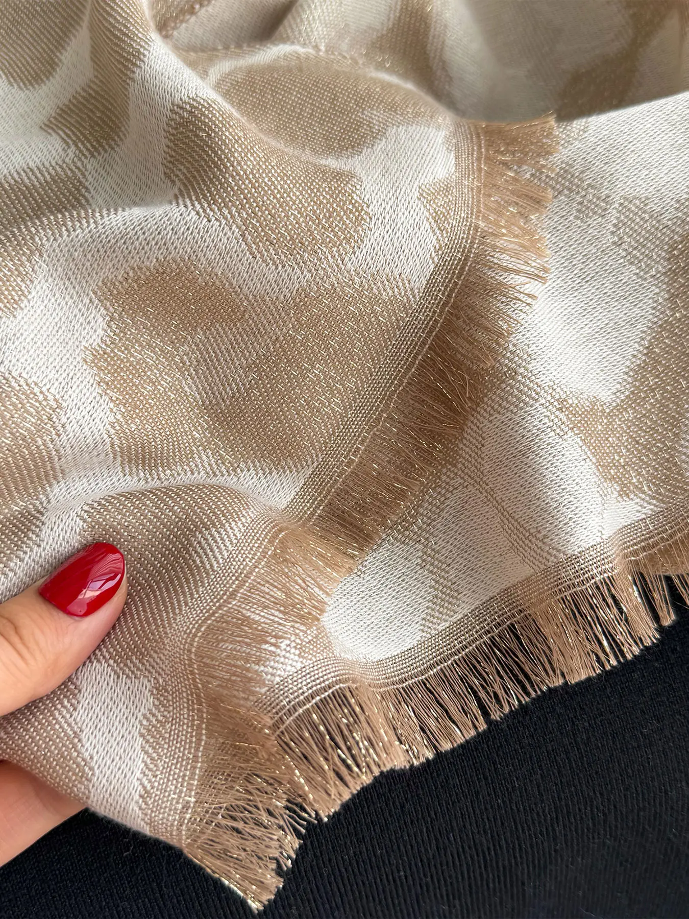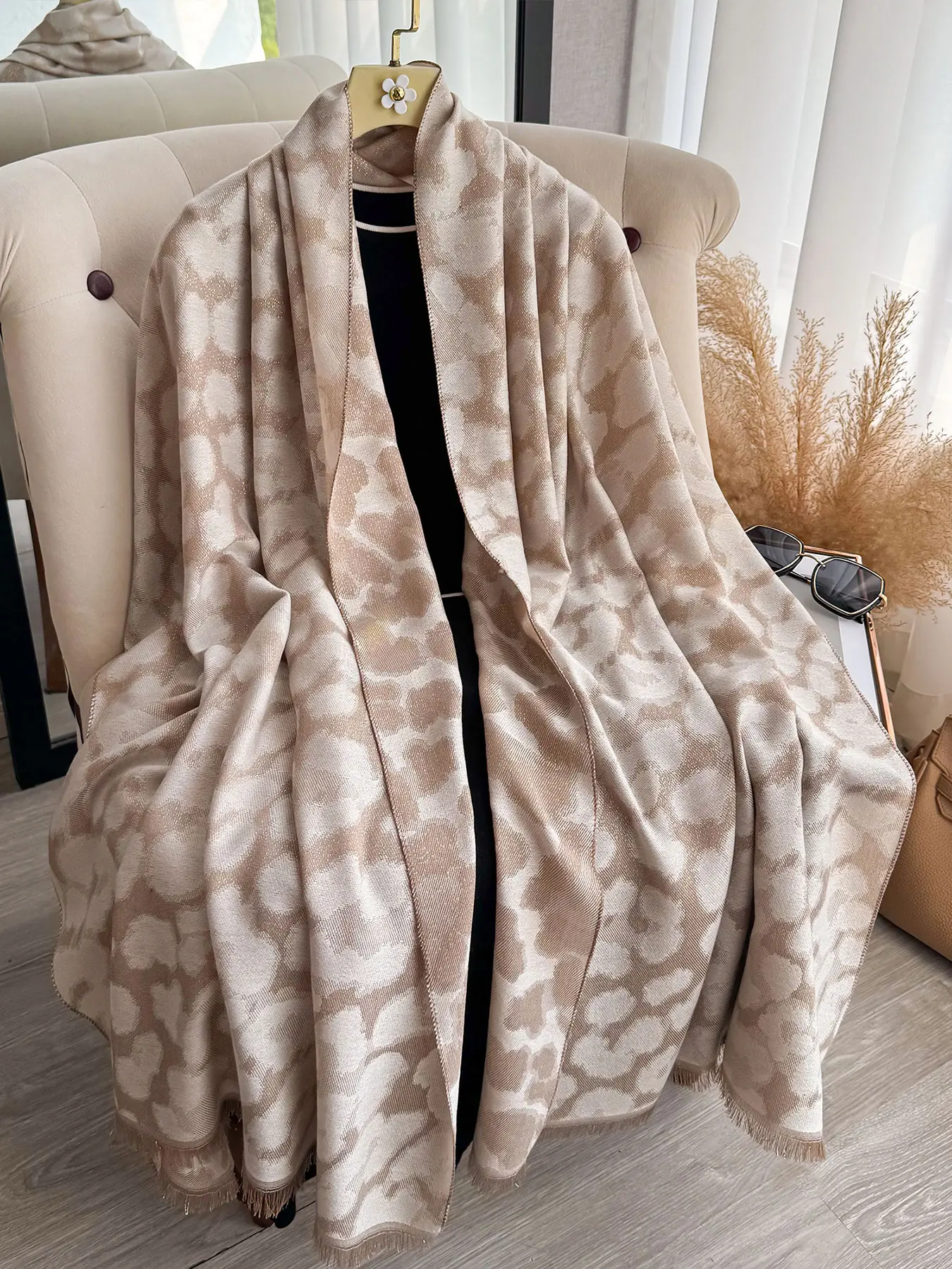 Fringe Edged Leopard Print Scarf, Boho Style Scarf, Fashionable Animal Pattern Shawl for Versatile, Perfect Accessory for All Seasons