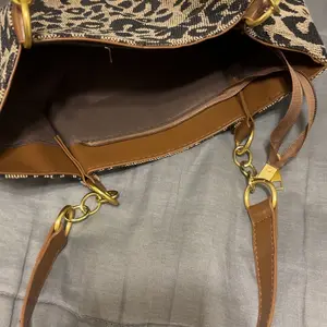 This is a great size bag. I love the leopard print on it. And it has one pocket inside with plenty of room for all of your things.
