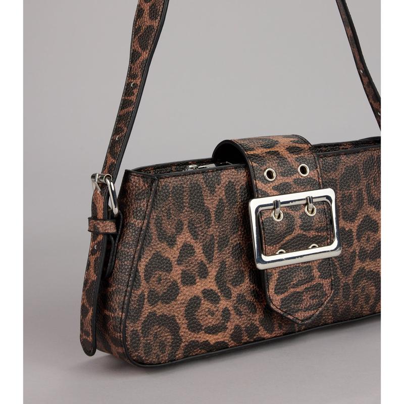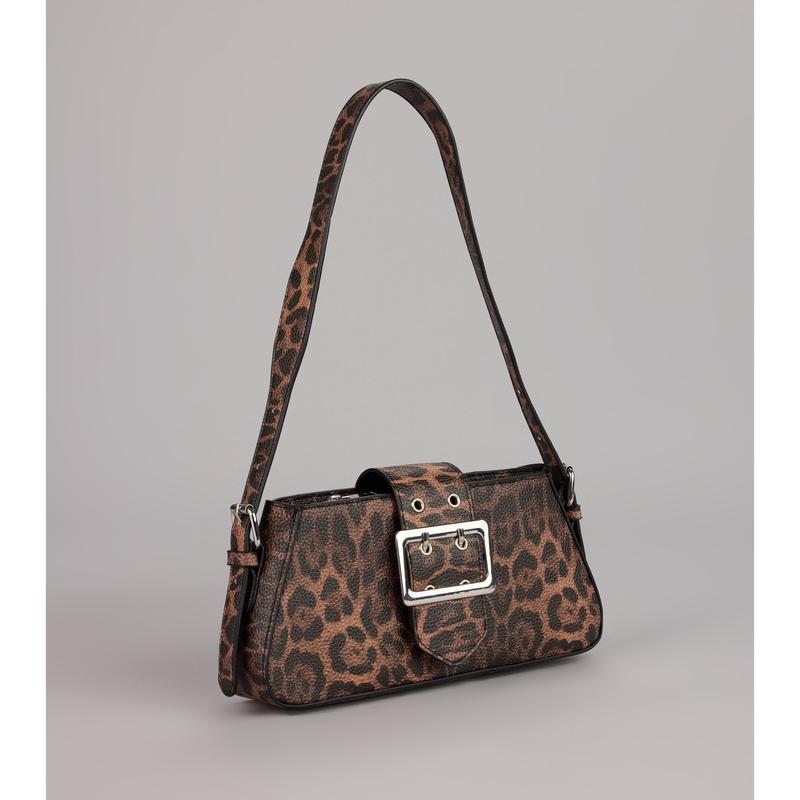 This leopard shoulder bag features a sleek buckle detail and gold hardware that instantly elevates your look—equal parts fierce and refined for your everyday it-girl rotation.