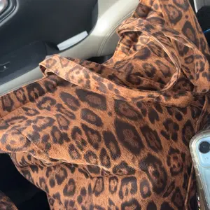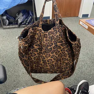 very nice bags the greyish and the darker leopard is Suede the light light one is reg tote bag material I got them