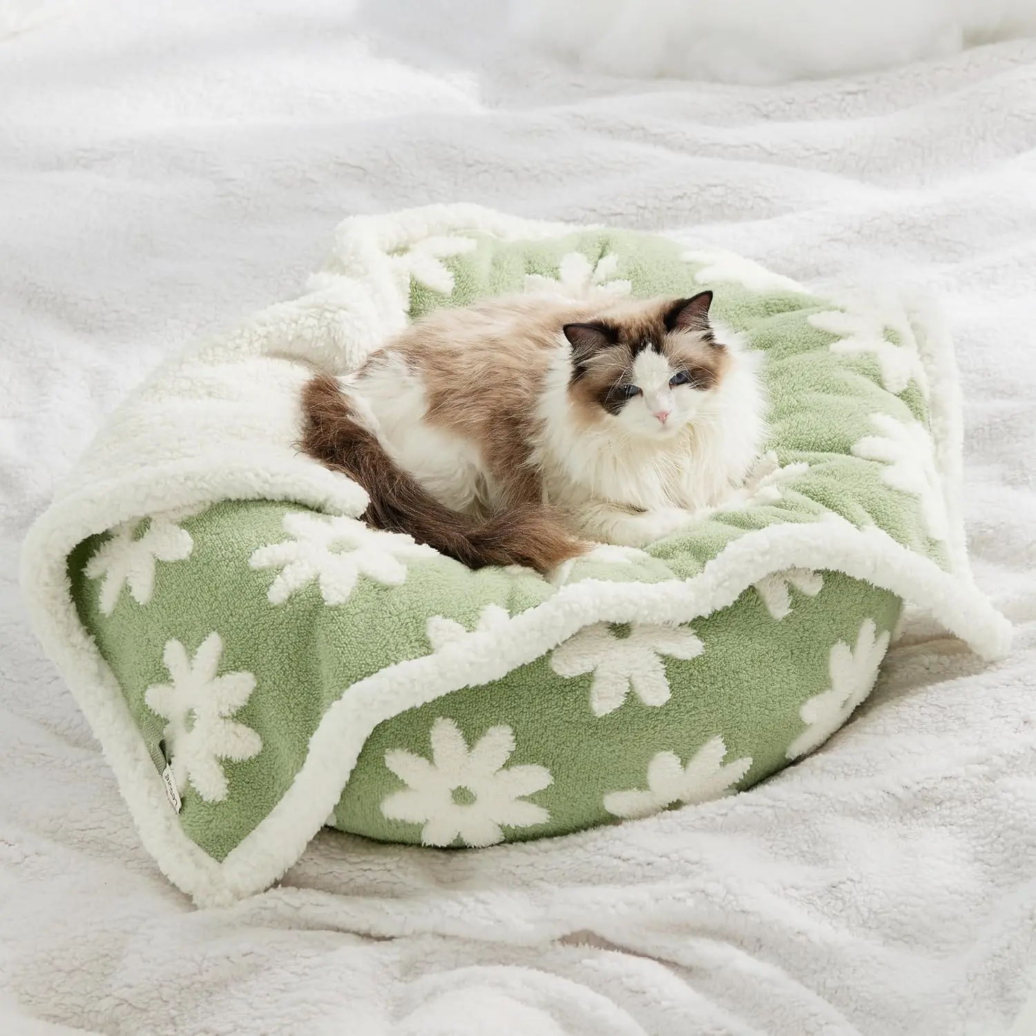 The feel of Sherpa on one side and Jacquard shag on the flip side promises your pet's ultimate warmth and coziness. It's more than just a blanket; it's a fashion statement that adds a touch of charm to your home decor.