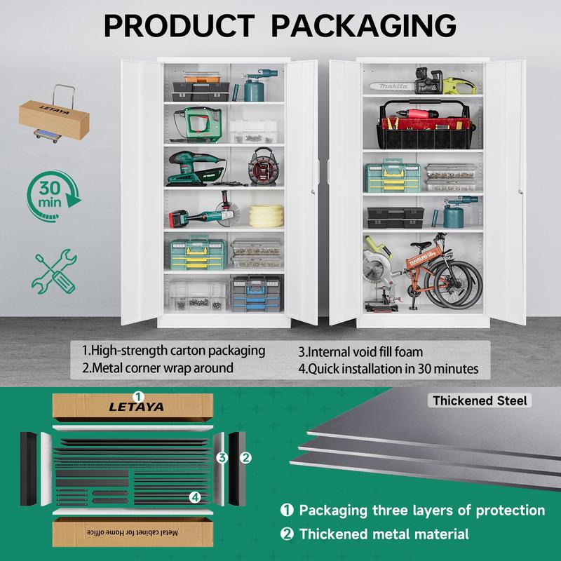 ·【High-Quality Metal】: Letaya metal storage cabinet with whole-in-one reinforced heavy gauge steel deluxe welded frame, 2 locking doors are also strengthened by with additional steel bars, whole steel frame thickness up to 0.8 mm, rugged and not easily deformed, plate adopted environmentally powder coated finish, Moisture proof,capacity to resist corrosion and rust,Can be used for a long time.