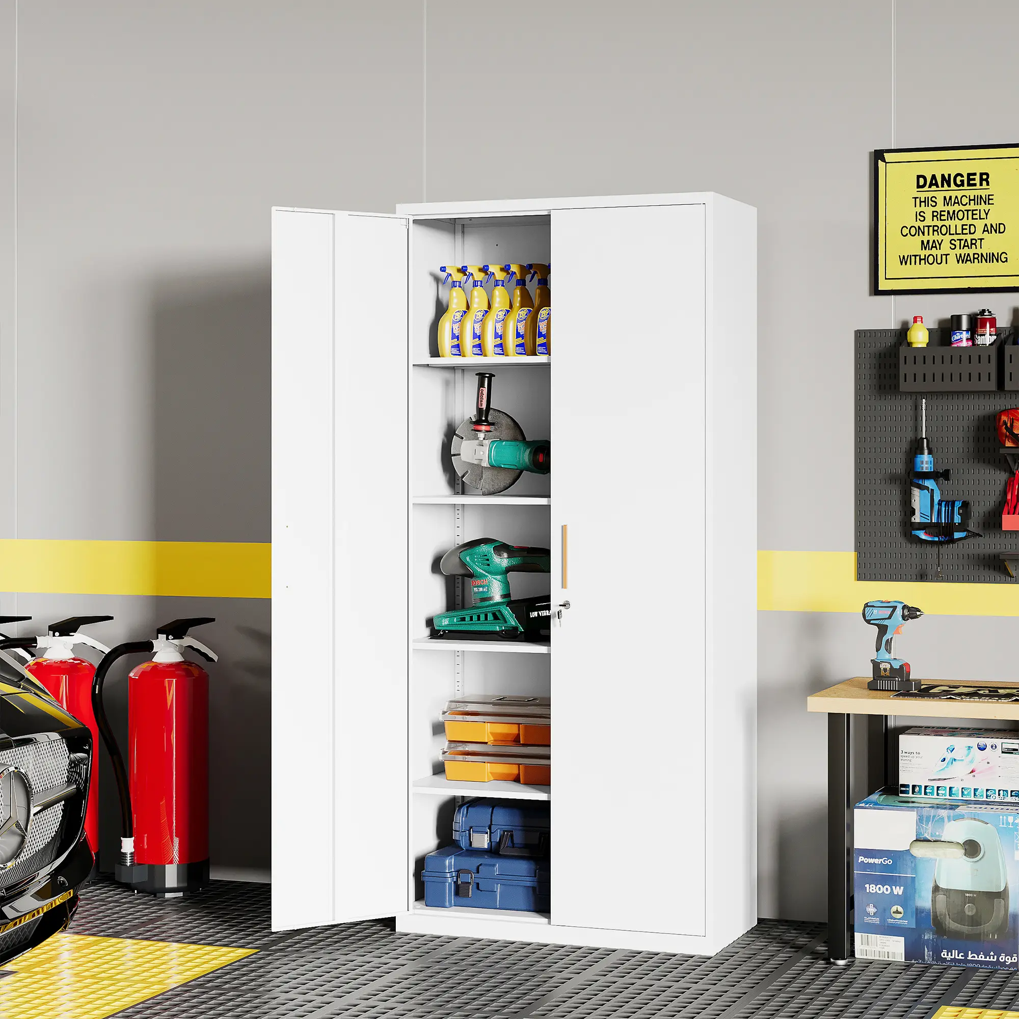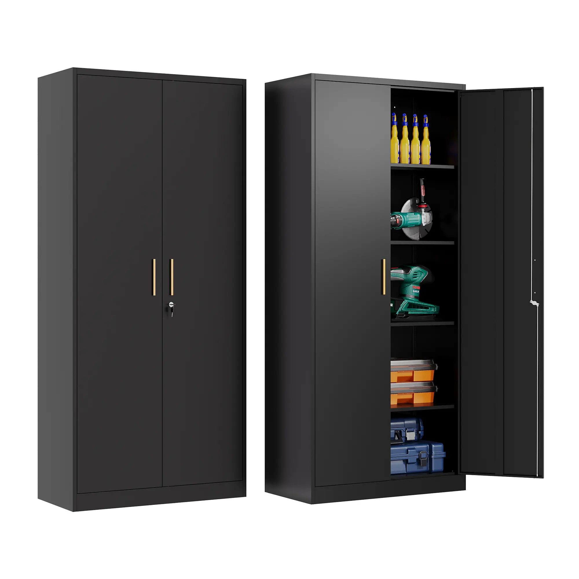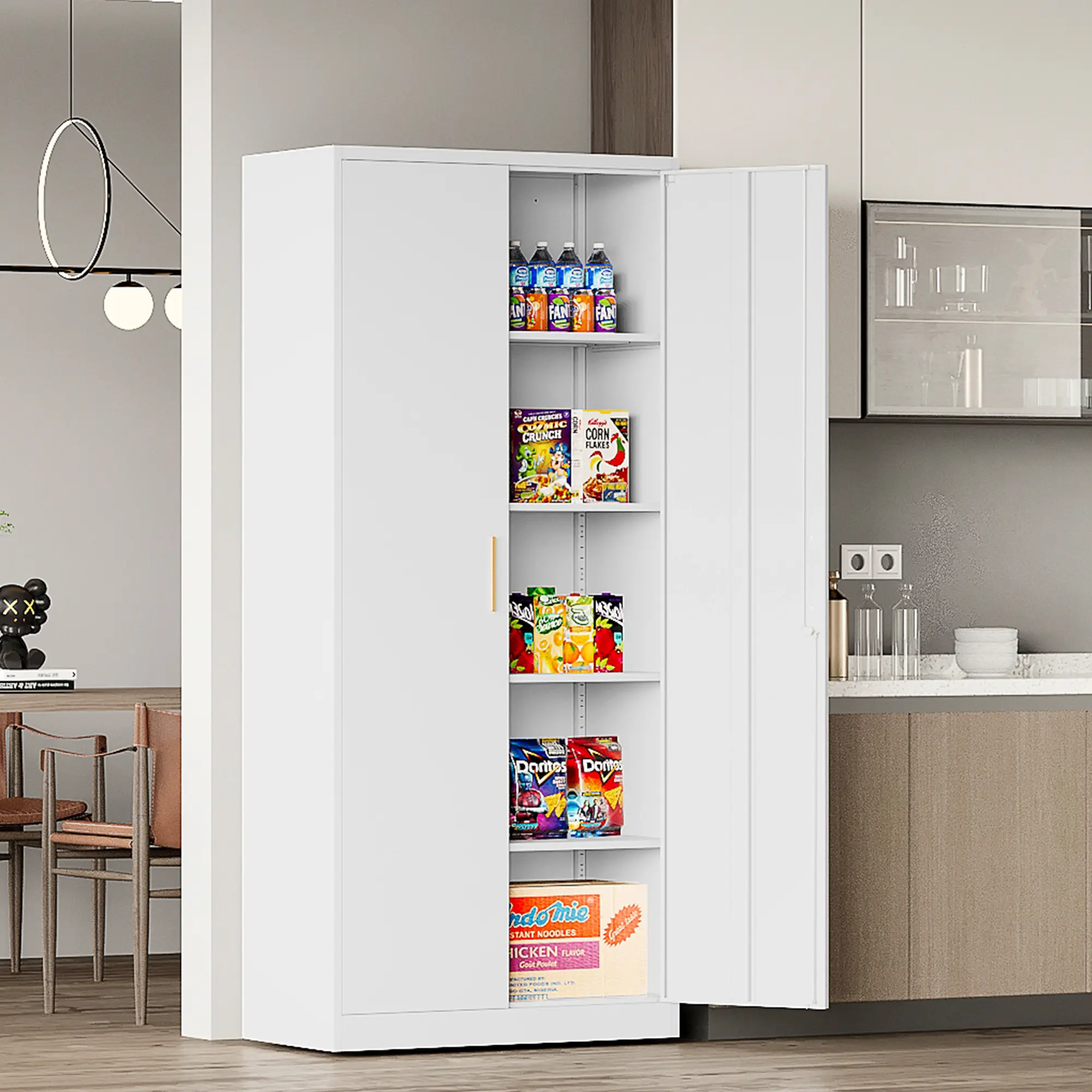 ·【Sturdy Metal Cabinets】Metal home pantry cabinet made of heavy-duty metal frame can carry up to 180 pounds per shelf, ensuring durability and stability.