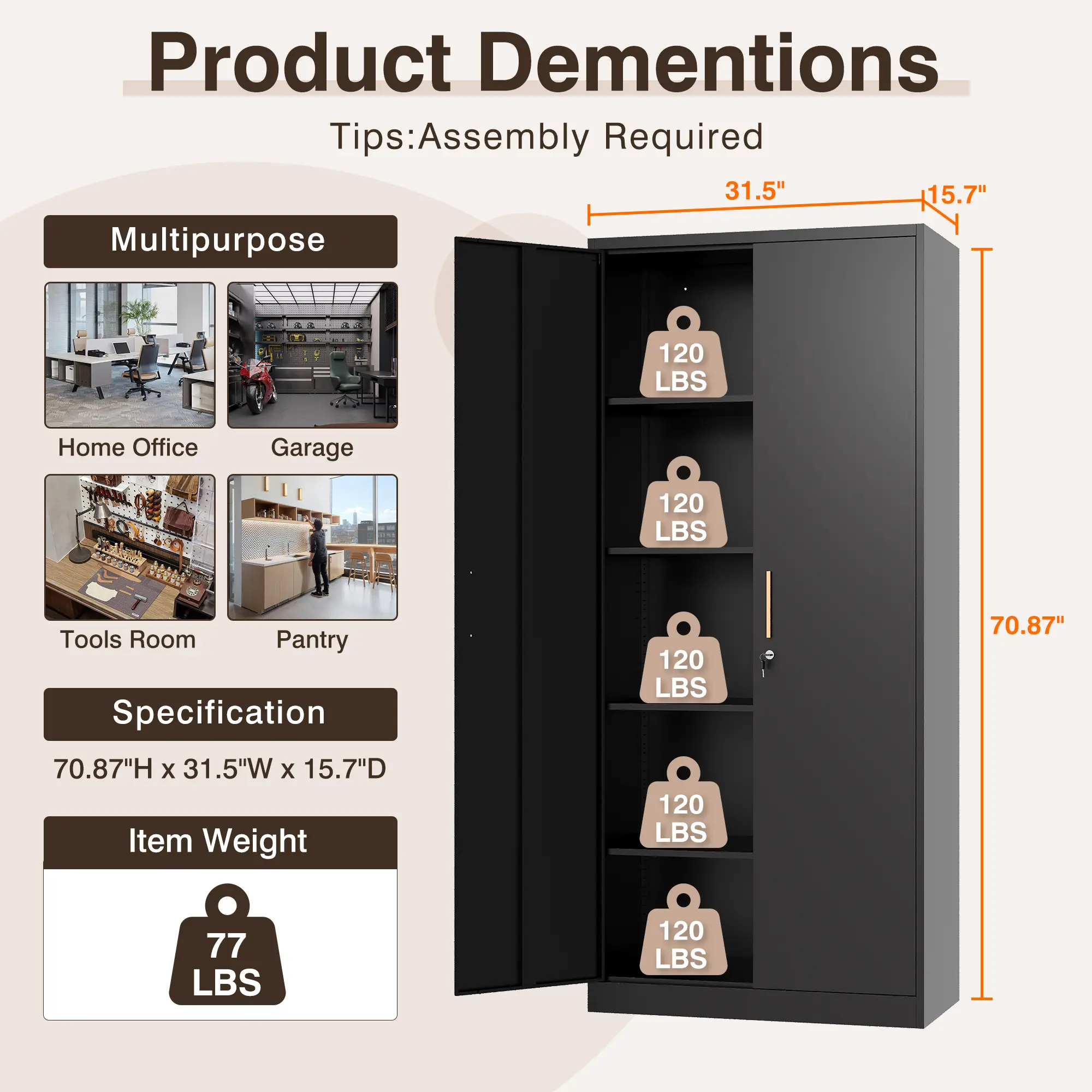 ·【Easy to Assemble】Our Pantry Locker need to be assembled after receipt and the installation steps are very simple. Provide installation tools,installation instructions and video installation guide.