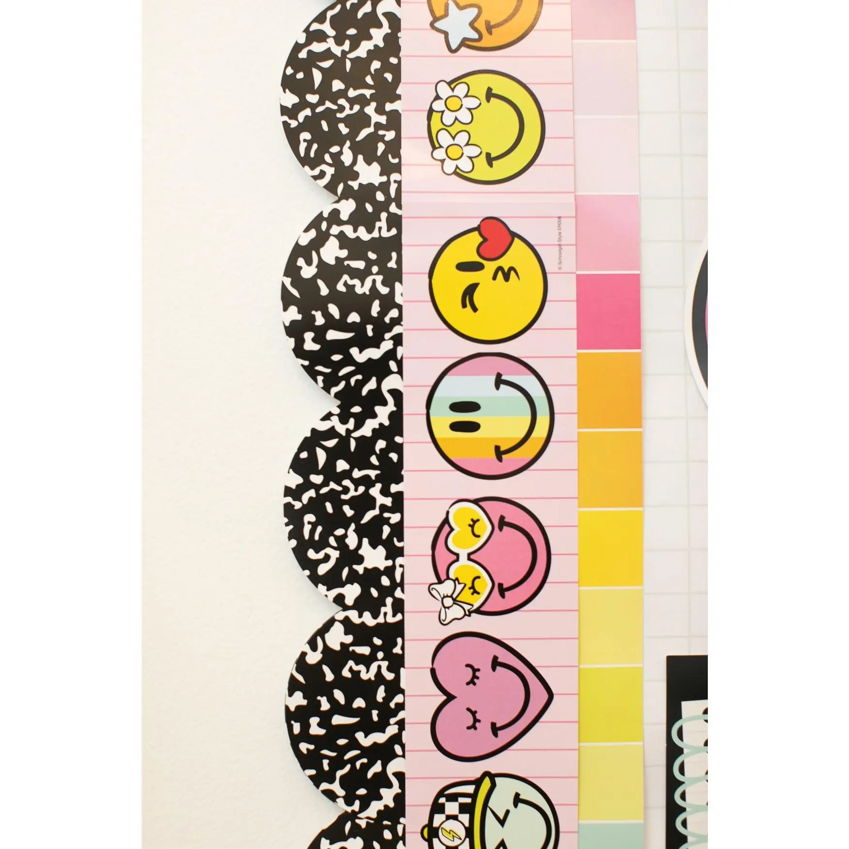 This Let’s Be Friends Smileys Rainbow Pastel Bulletin Board Border is all about spreading smiles and good vibes! With its collection of fun, cheerful smiley faces—complete with sunglasses, hats, and sweet hearts—it’s the perfect way to brighten up any bulletin board or display. The pastel pink background and playful characters bring energy and joy to your classroom. It perfectly complements the Emotional Rollercoaster collection, adding a pop of happiness and positive energy to your classroom space!