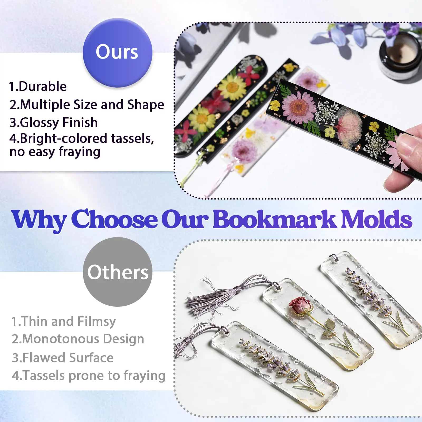 ·【Premium Bookmark Molds】: Our bookmark silicone molds for resin are made from premium silicone material, hold their shapes perfectly even after you filled the resin, flexible and durable for effortless demolding every time ; create a glossy, mirror-like surface to your resin creations—no extra polishing needed.