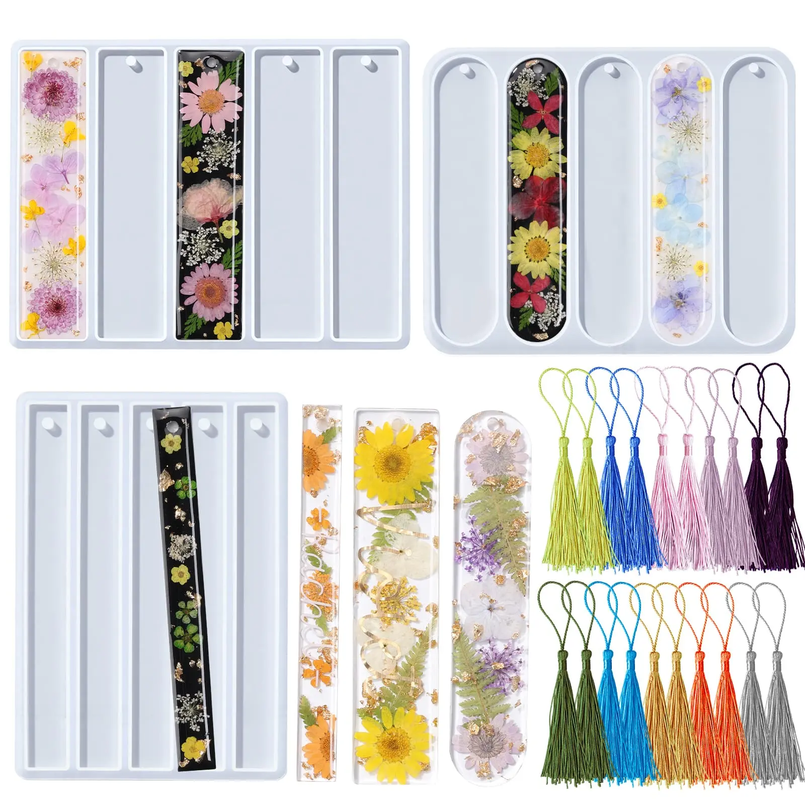 ·【3 Shapes Bookmark Resin Molds】– Includes 3 reusable resin casting molds (small rectangle, medium rectangle, and curved edge) with 15 total cavities + 20 colorful tassels. Perfect for making up to 15 unique resin bookmarks at same time and keep uniformed styles but also maintain unique.