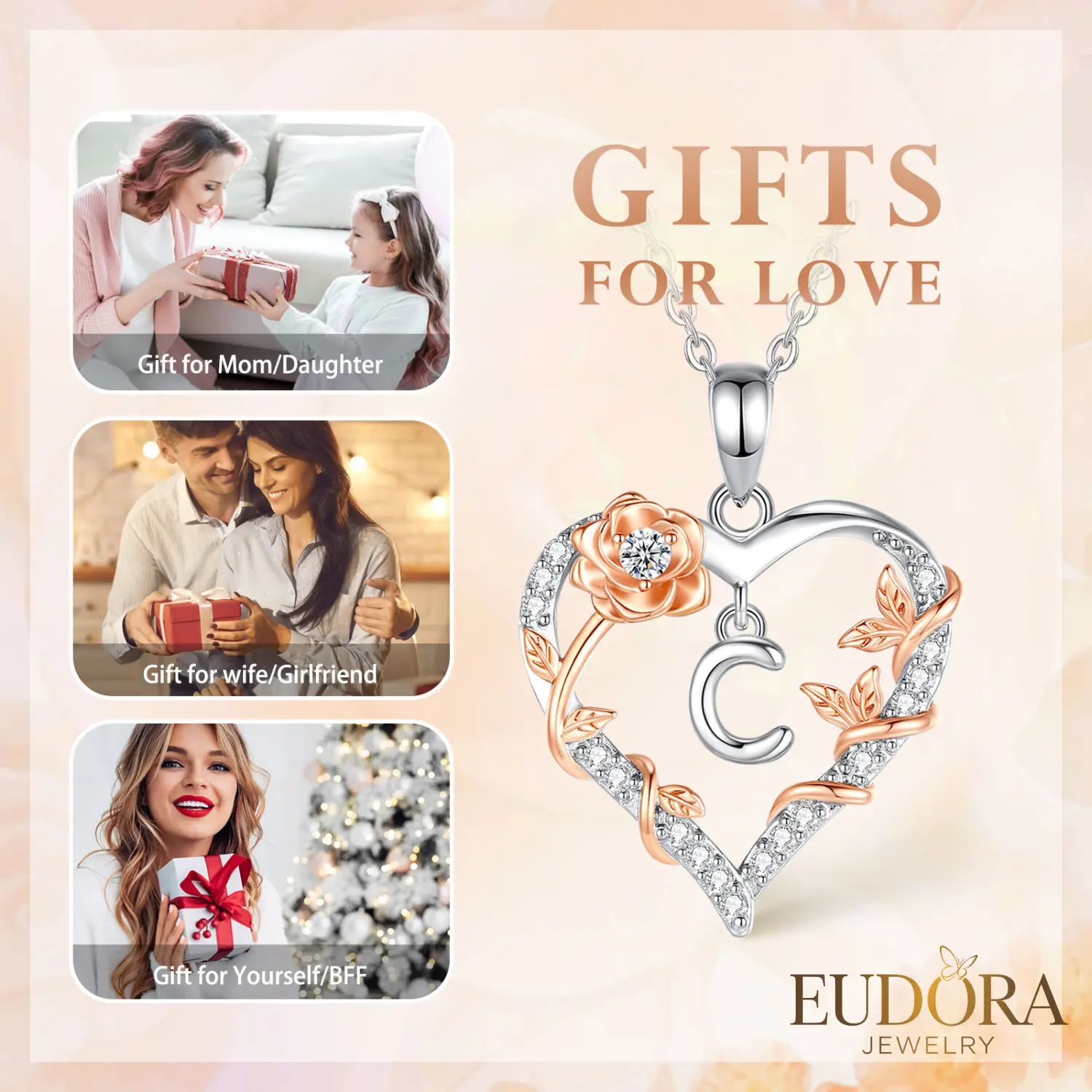 Unique Design to Express Love This letter heart necklace combines 24 alphabet letters with a classic heart design, simple yet meaningful. The personalized letter symbolizes her uniqueness, making it a perfect choice to express your love. Perfect Valentine’s Day Gift Surprise her with a romantic gesture! The EUDORA Letter Heart Necklace is the ideal gift for Valentine’s Day, birthdays, anniversaries, Mother’s Day, and more. Suitable for girlfriends, wives, best friends, or moms, it’s a meaningful way to show your love.
